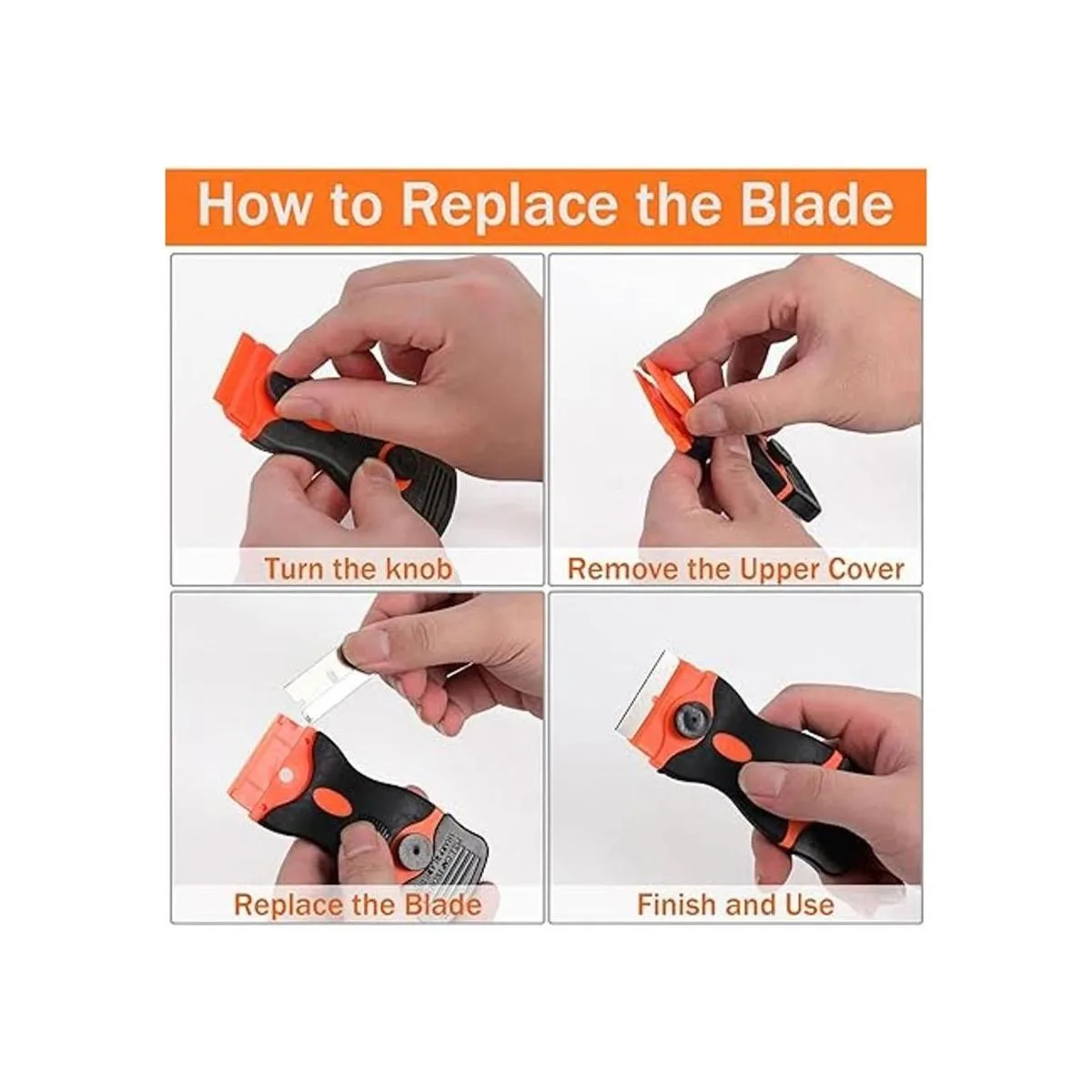 Fácil de usar: nuestras herramientas raspadoras de cuchillas adoptan un diseño ergonómico de mango. Cómodo de sostener y de uso duradero. Gira el pomo en la parte posterior del raspador de la cuchilla de afeitar, desmonta y reemplaza con una nueva hoja, luego sujeta la perilla.