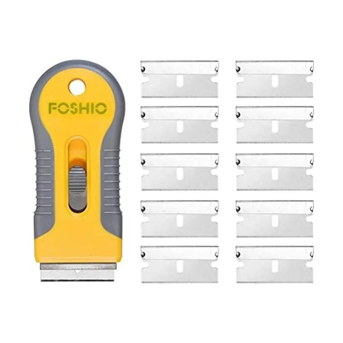 Raspador de plástico retráctil para quitar adhesivo de vidrio con 10 cuchillas de repuesto extra, herramientas profesionales de envoltura de vinilo para tinte de ventana