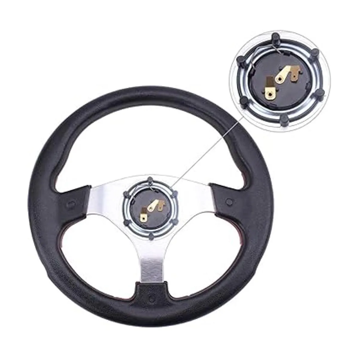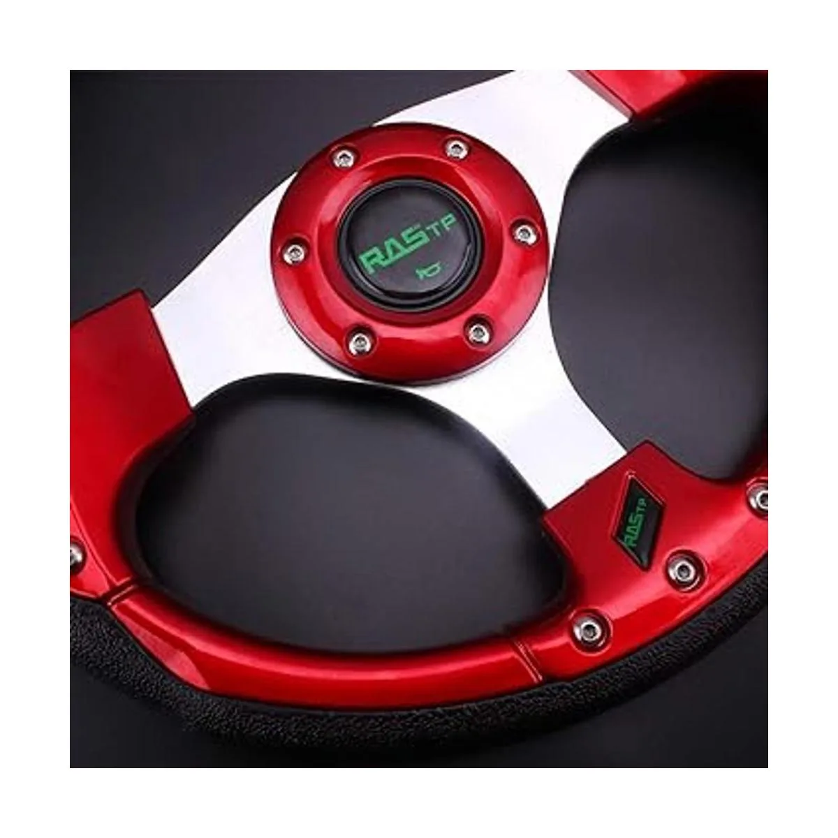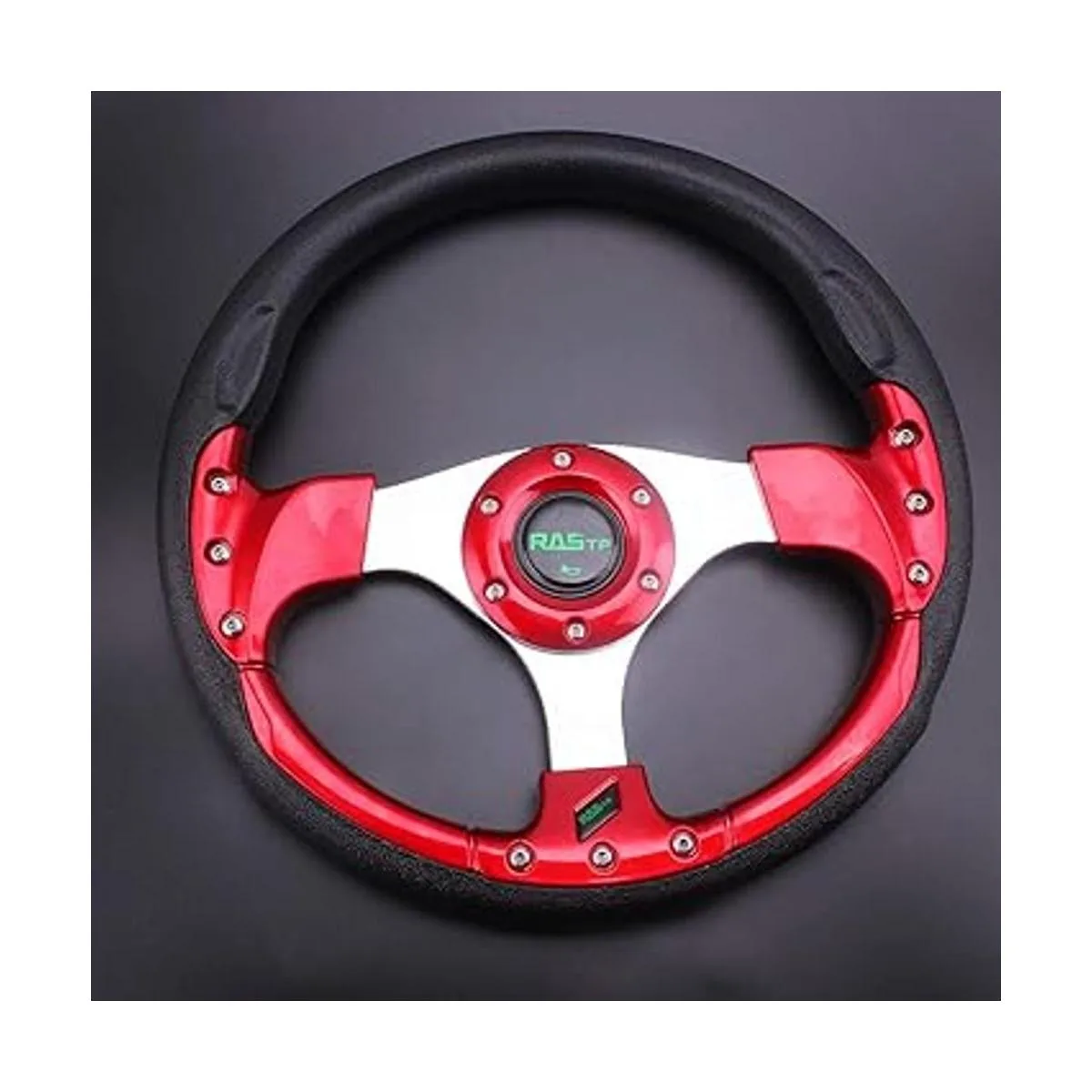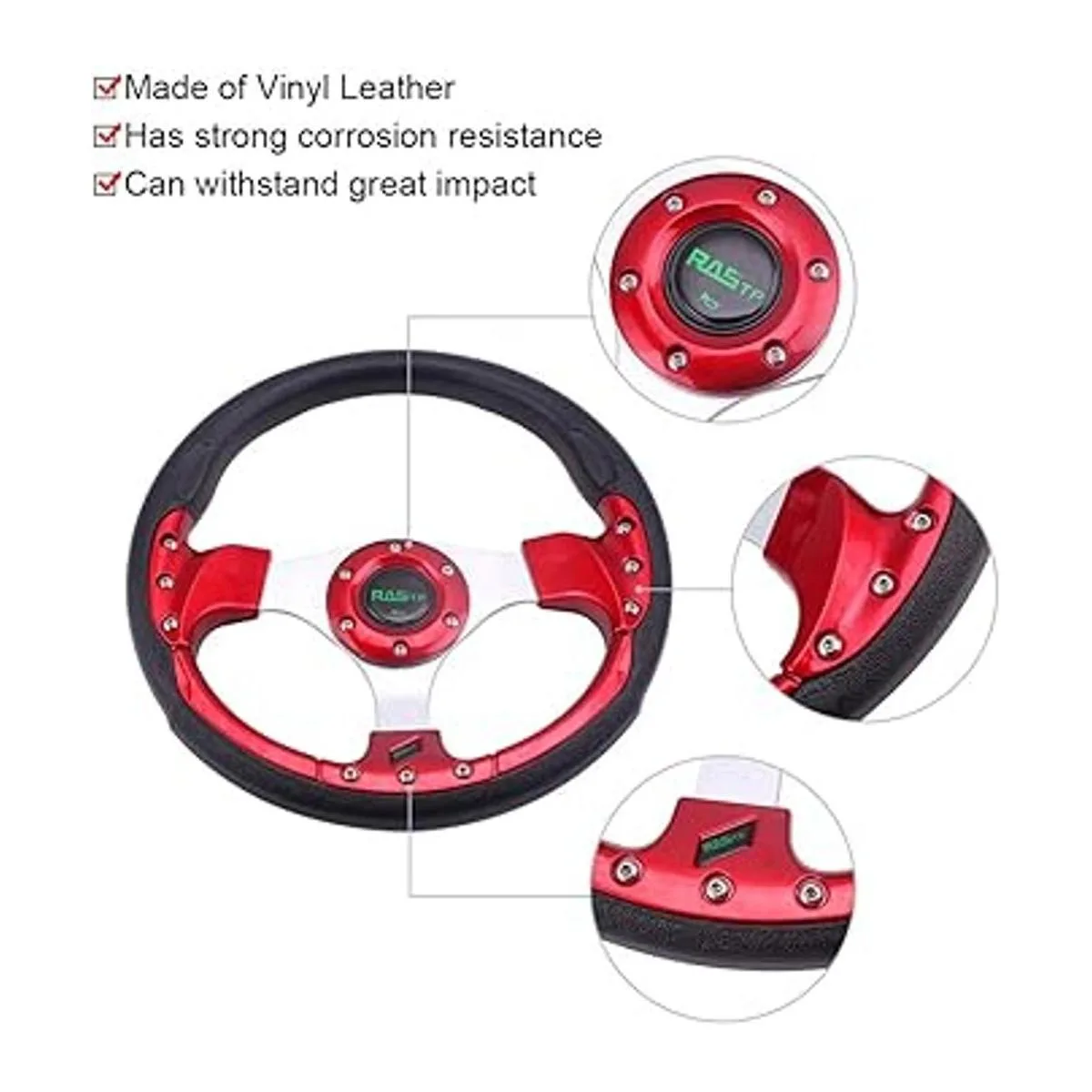 RASTP Volante universal de carreras y carrito de golf de 12.5 pulgadas, 15 pernos de agarre de cuero y aluminio con botón de bocina para automóvil, club, DS y club, automóvil, precedente, EZGO Yamaha, carrito de golf, color rojo