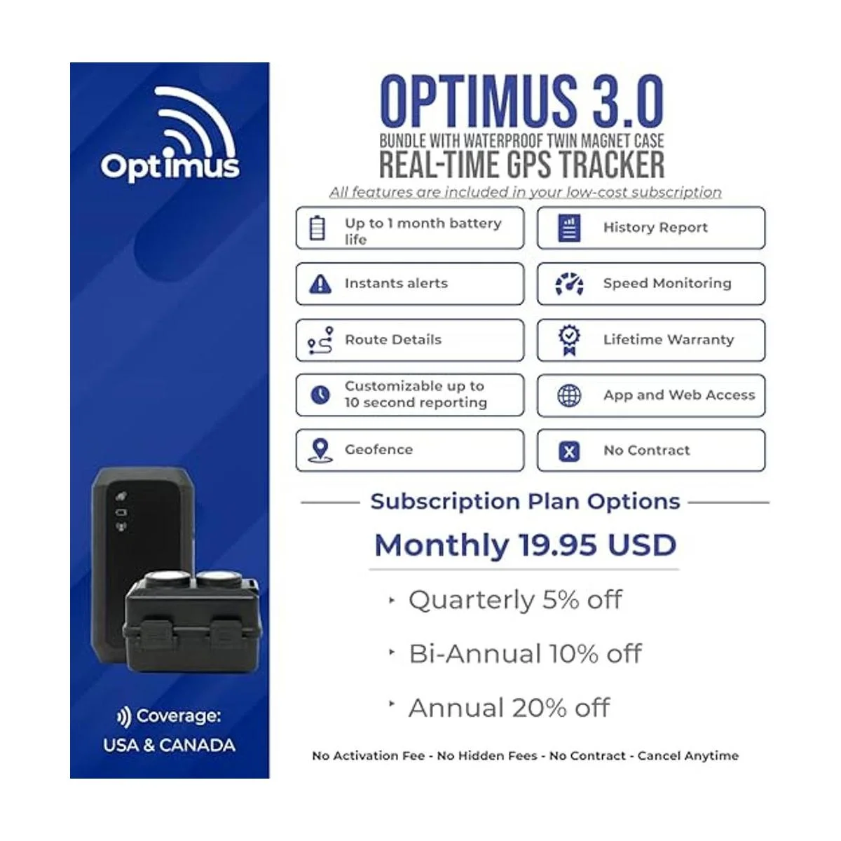 Rastreador GPS Batería de 1 mes Paquete Optimus 3.0 con funda impermeable de imán doble para vehículos, flotas, activos, dispositivo de seguimiento GPS en tiempo real 4G LTE Alertas instantáneas plan de suscripción de bajo costo