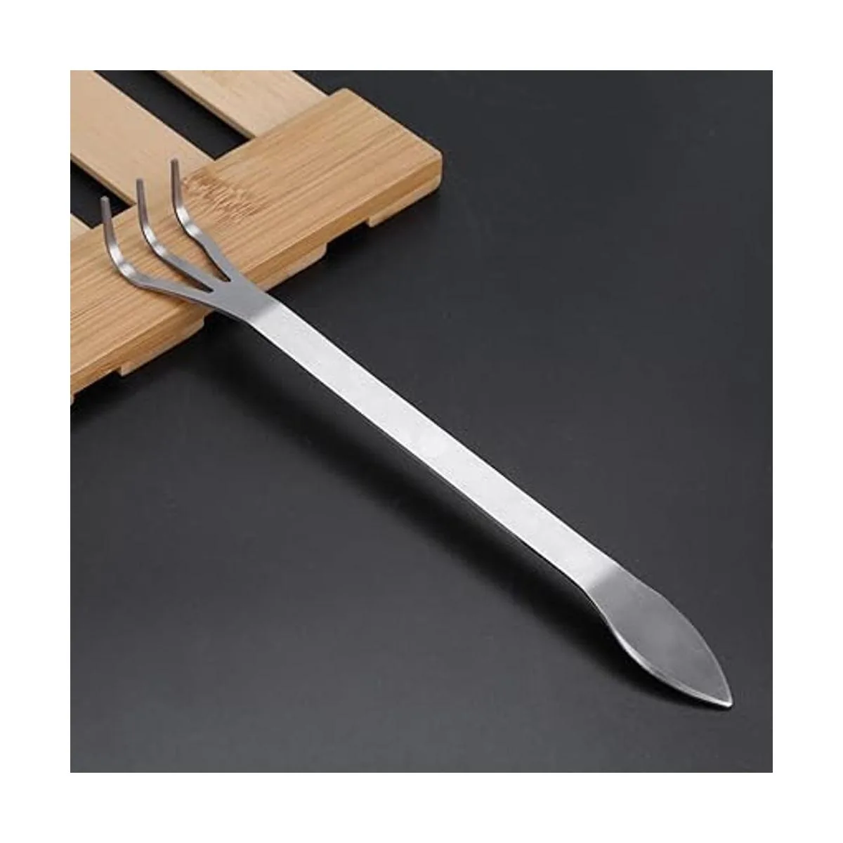 Rastrillo de raíz de acero inoxidable de 3 puntas para aflojar el suelo, herramientas de árbol bonsái con mango ergonómico para exteriores