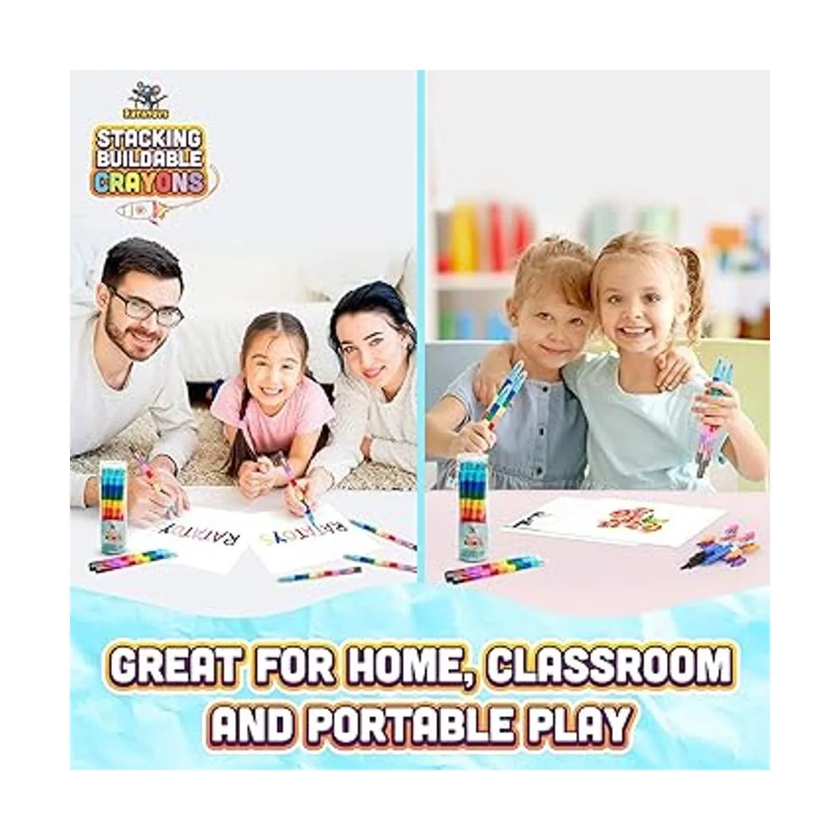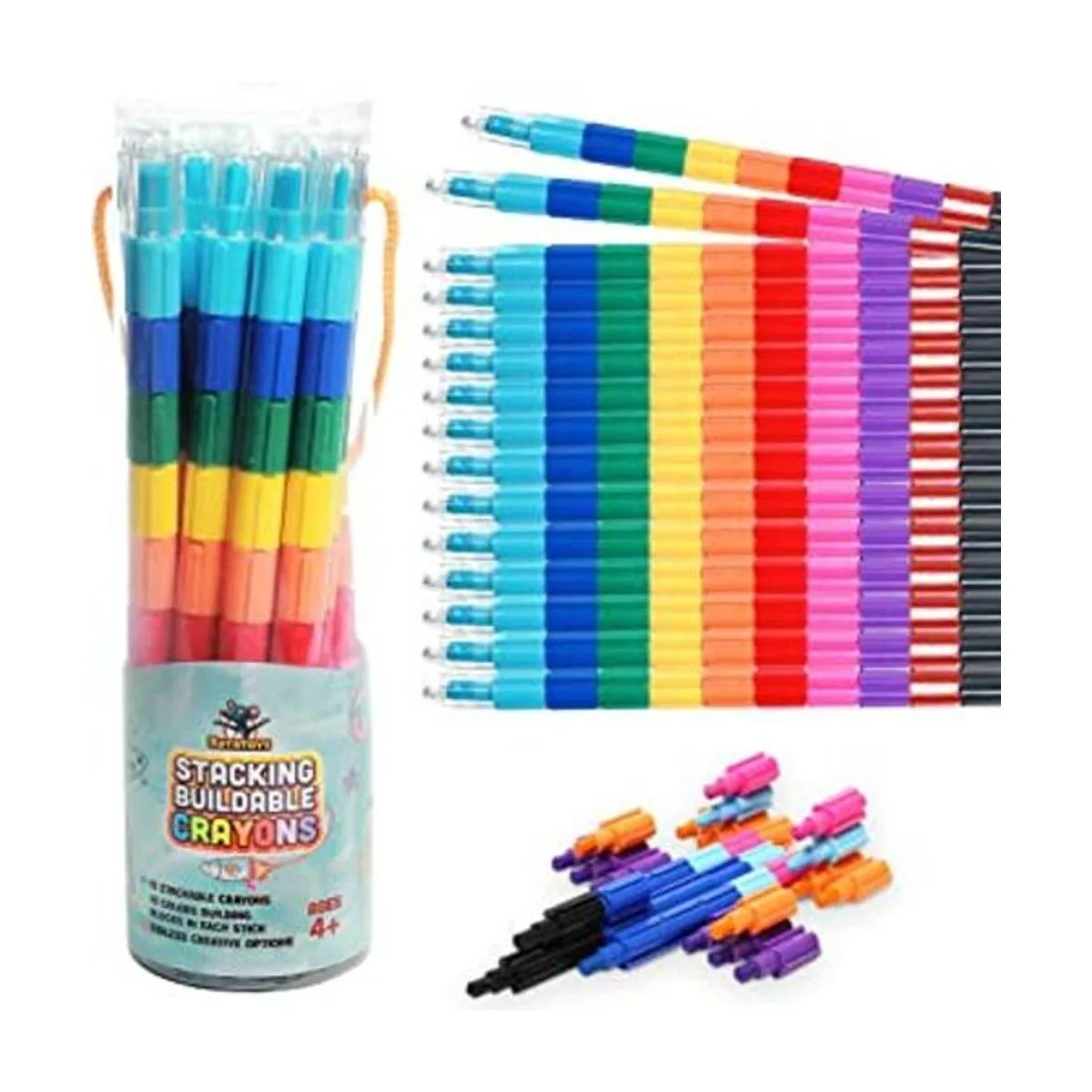 Ratatoys Juego de 15 crayones apilables, construibles y apilables para dibujar, colorear o artes y manualidades, piezas grandes de conexión aptas para preescolar, recuerdos de fiesta y diversión en el aula