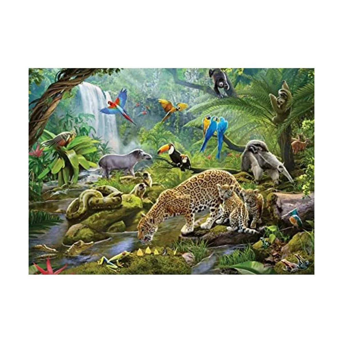 Acerca de este rompecabezas de 60 piezas Ven a explorar las maravillas de este hábitat tropical en nuestro rompecabezas animales de la selva lluviosa
