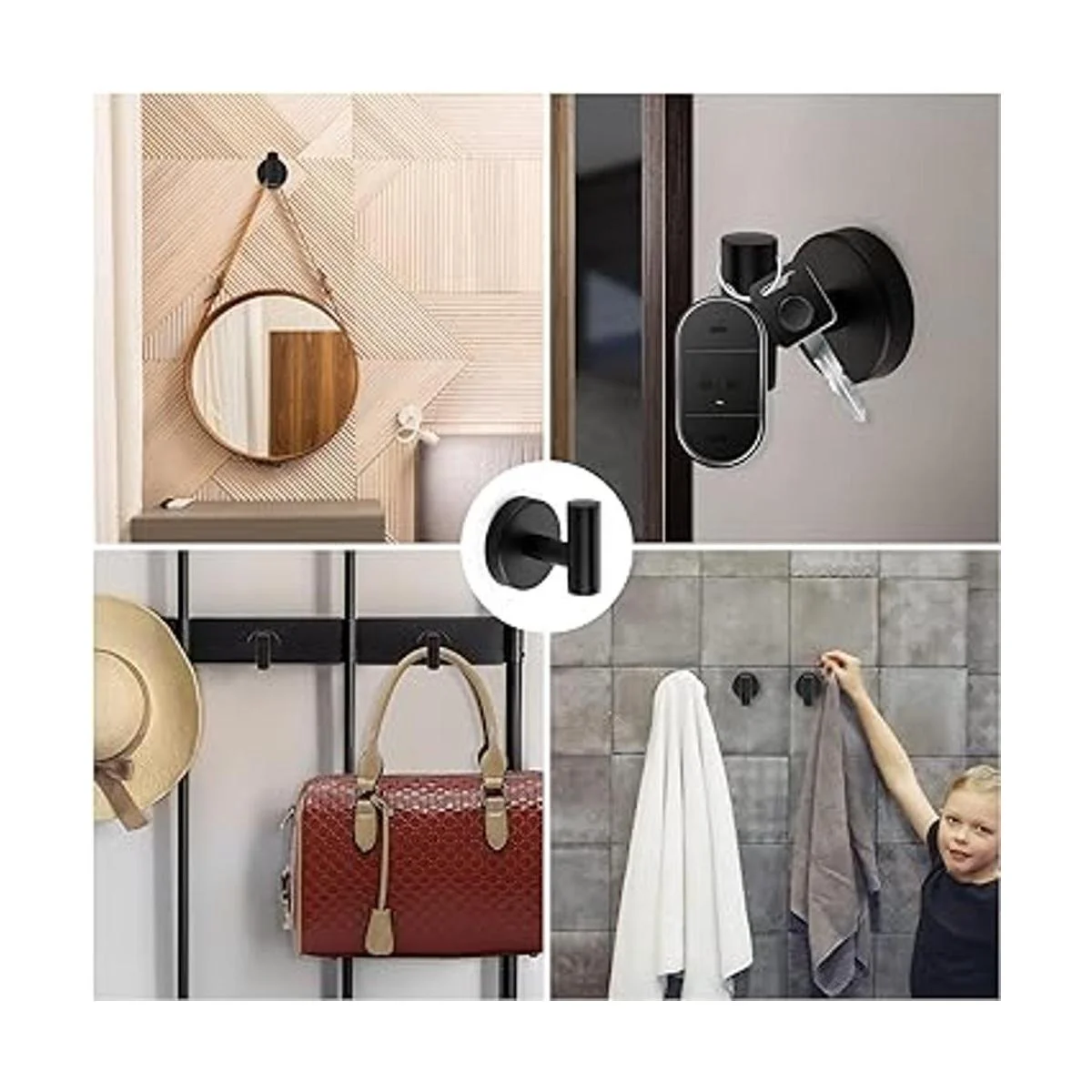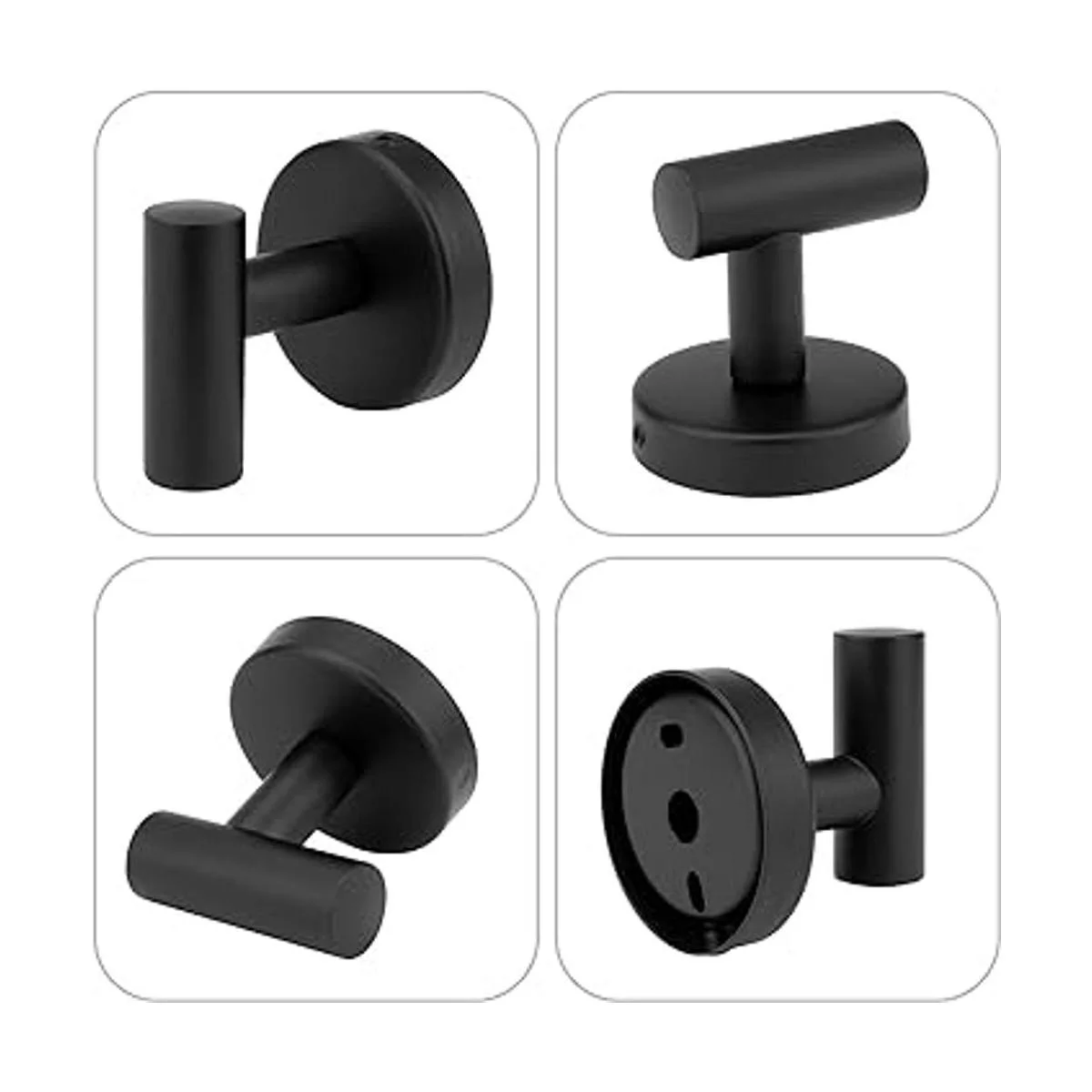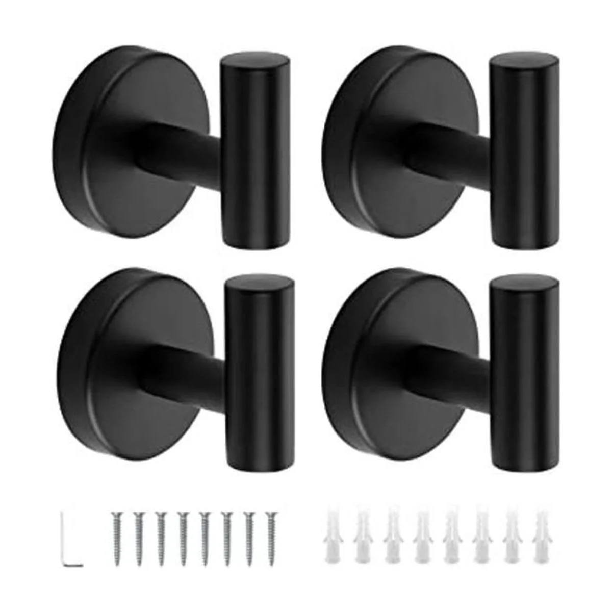 Ravinte Ganchos para toallas de baño, 4 ganchos negros para toallas de pared, acero inoxidable SUS 304, negro mate, gancho para bata, ropa, gancho para toallas para baño, montaje en pared