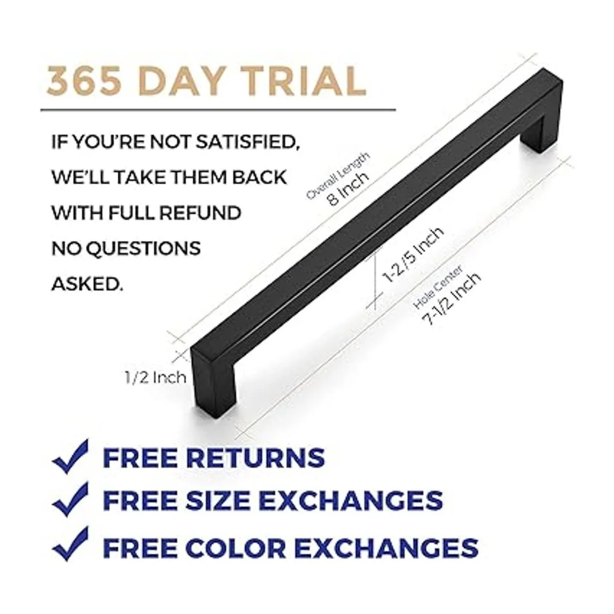 Ravinte Paquete de 5 tiradores cuadrados para gabinete de cocina de 7.5 pulgadas, negro mate, tiradores de cajón, negro; herrajes de cocina, tiradores de cocina para gabinetes y cajones