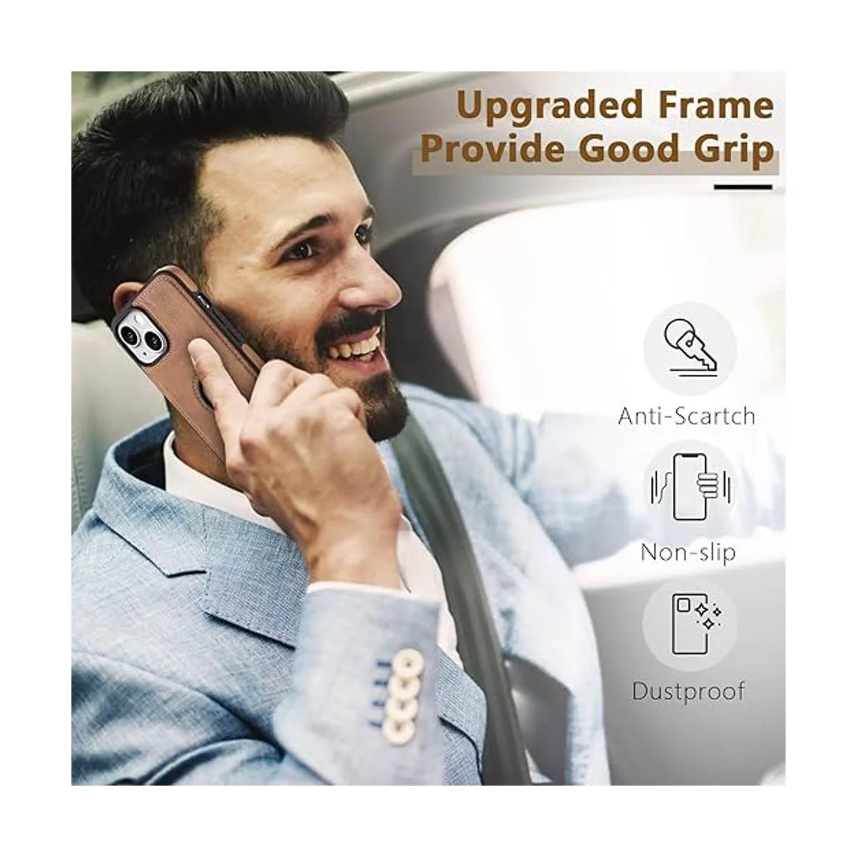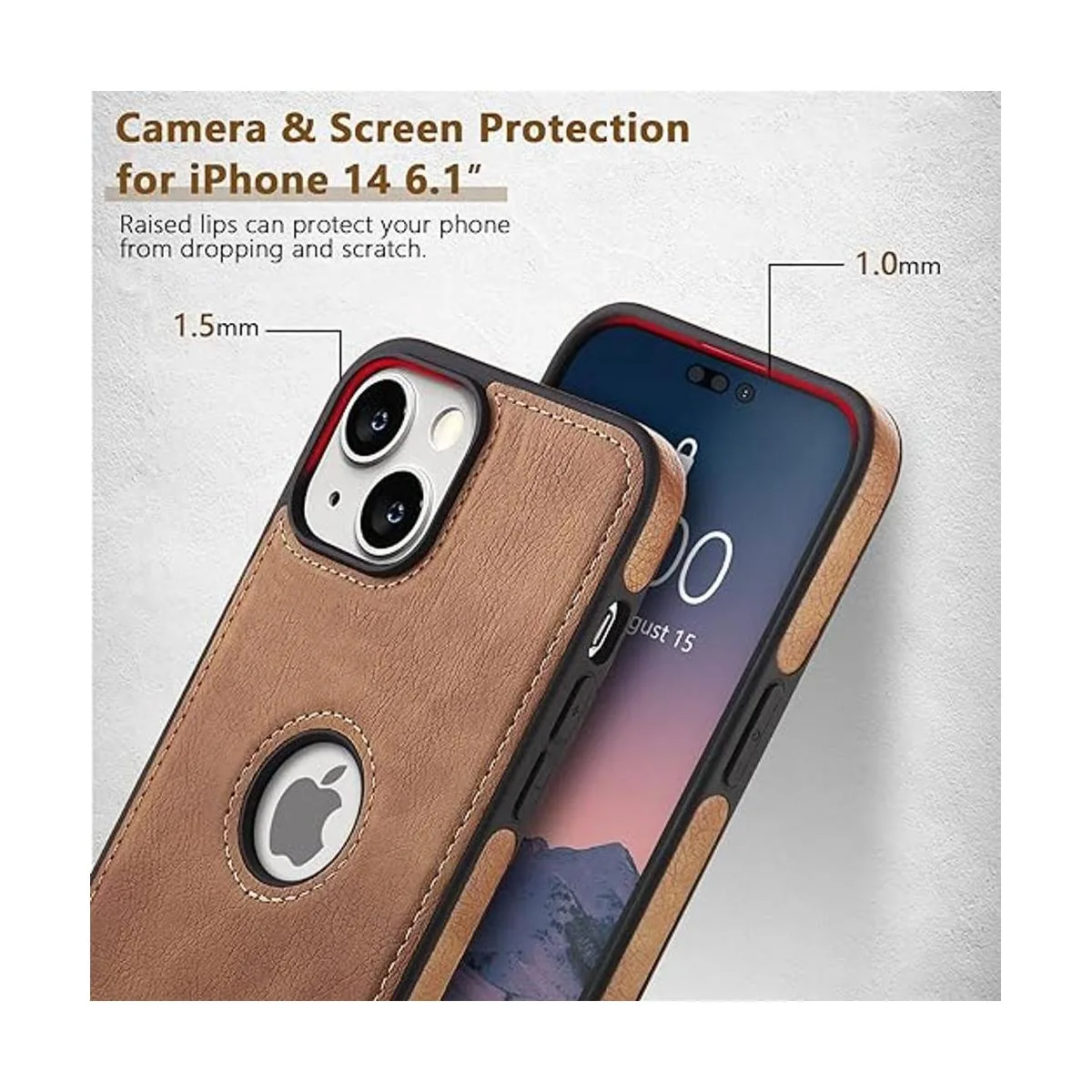 Razstorm Unique Design Funda de piel de lujo para iPhone 14, antideslizante, resistente a los arañazos, ultra delgada 2022, 6.1 pulgadas marrón