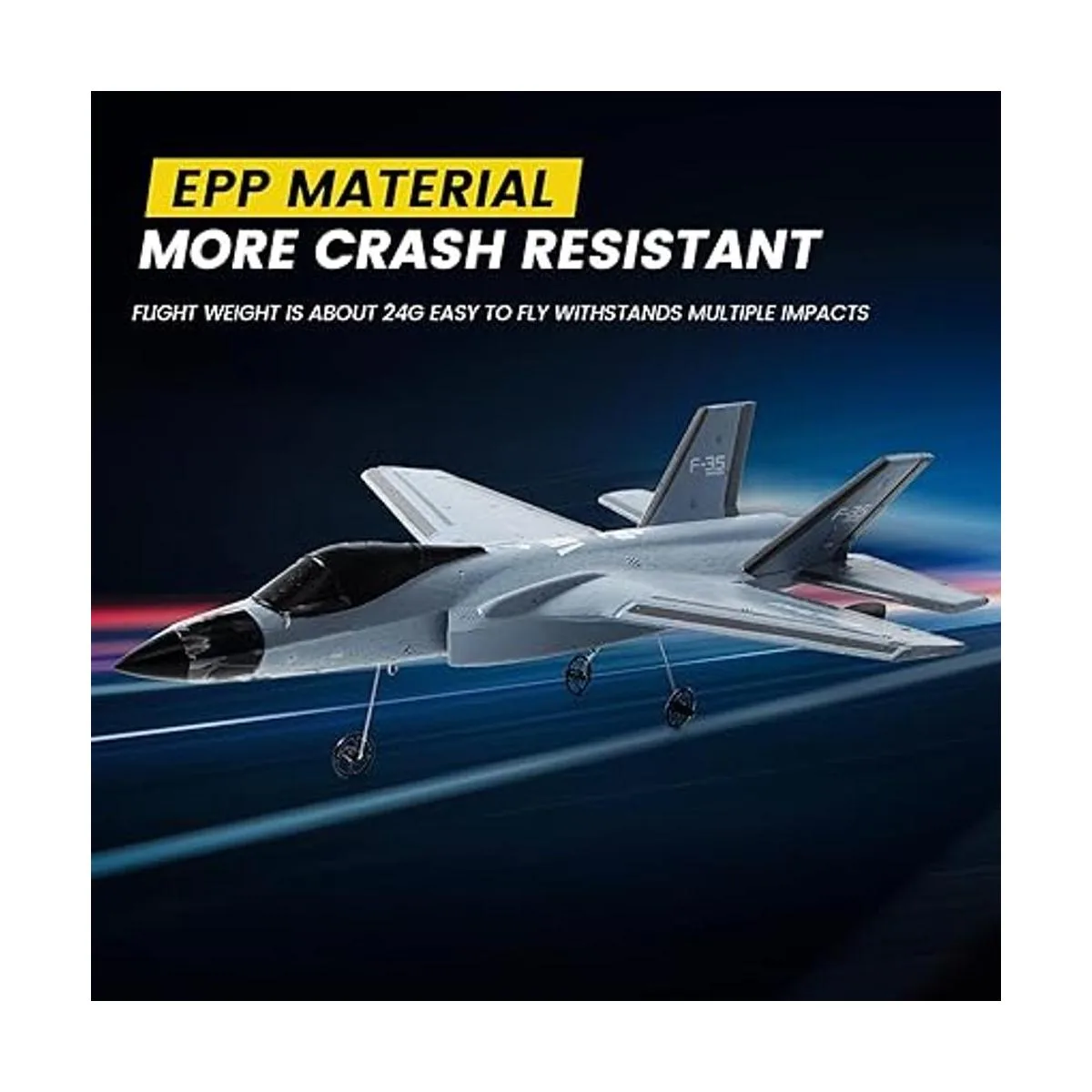 Easy to Fly The rc plane is scaled down according to F35 fighter jet, high fidelity, dualchannel design, builtin 3axis gyroscope flight stabilization system, making it easier to fly. Even beginners can fly quickly, simple to operate and easy to fly.