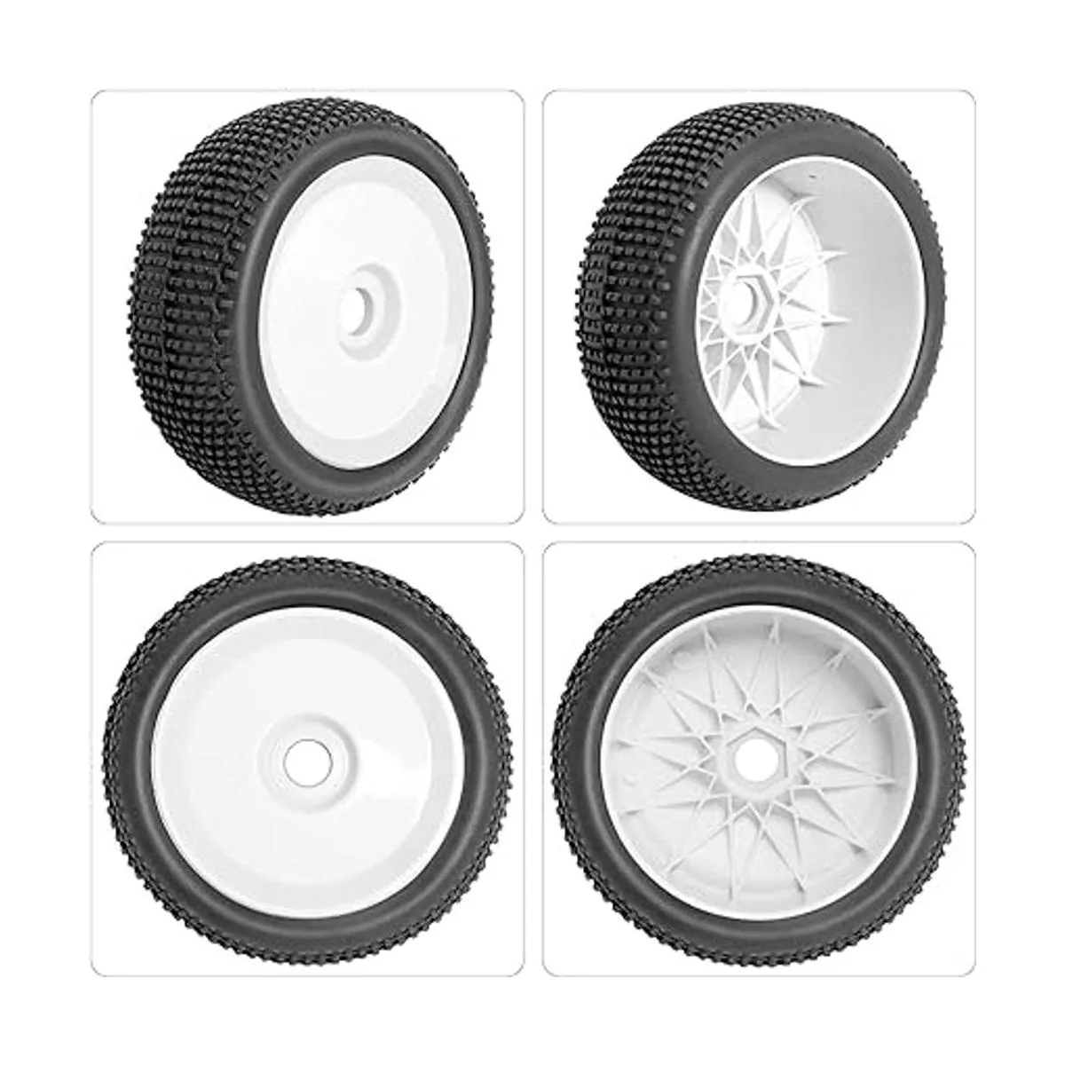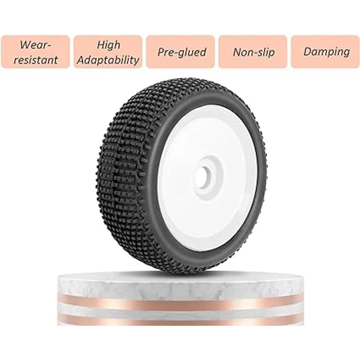 3. Excelente rendimiento: estas ruedas y neumáticos RC están prepegados, ahorra tiempo para pegar, tiene más tiempo para disfrutar. Además, su patrón especial de banda de rodadura para un excelente agarre y tracción en todos los terrenos y la rueda de plástico duro puede reducir la resistencia al aire, para ofrecer la mejor experiencia de carreras. Y será adecuado para correr en carreteras de asfalto, carretera de tierra arenosa, hierba y otras carreteras violentas.