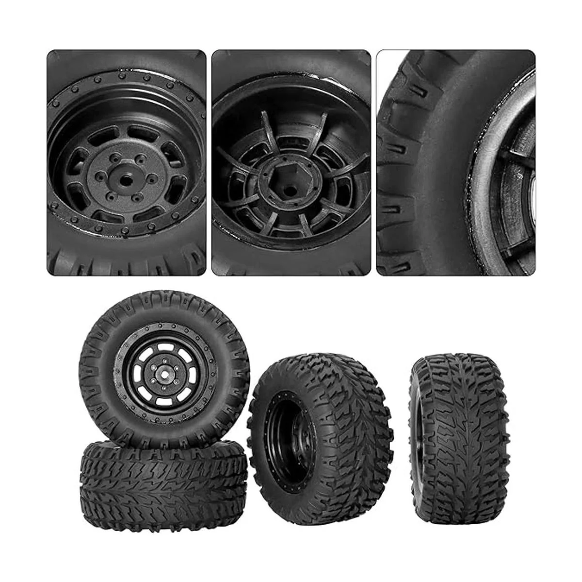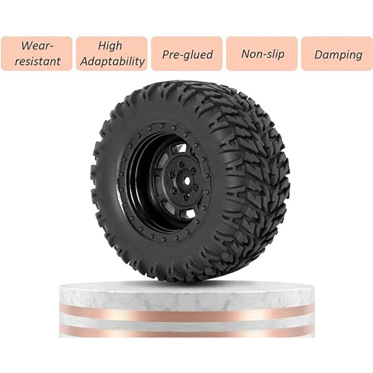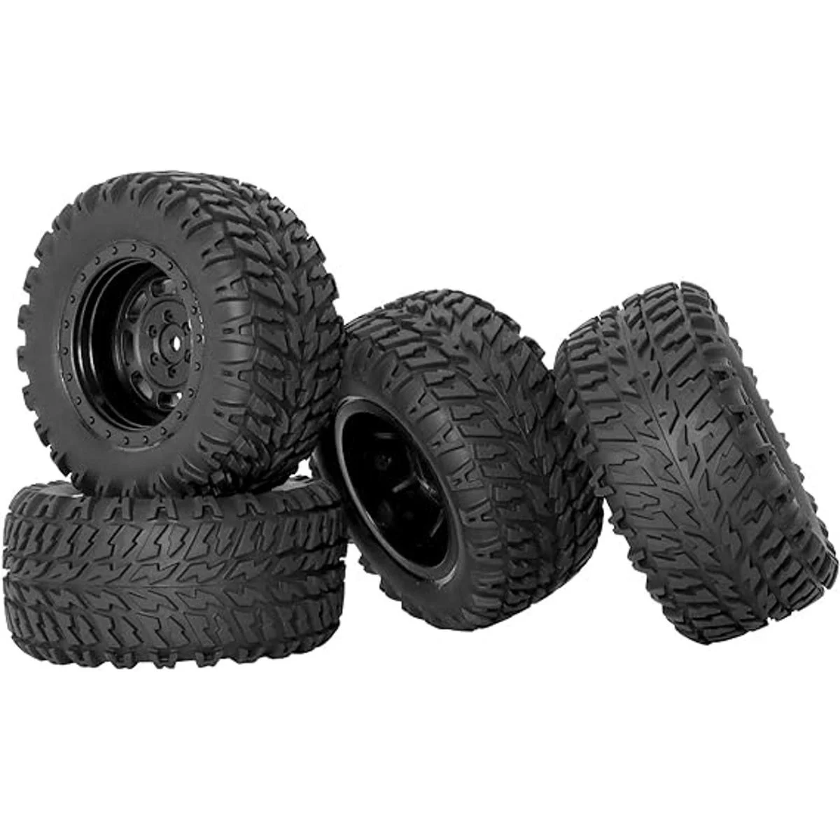 RC Station Juego de 4 ruedas y neumáticos hexagonales RC de 0.472 in a escala 110 neumáticos todoterreno prepegadosmontados con llantas y llantas RC con inserciones de espuma para neumáticos de camión de carreras cortas para Traxxas Arrma Redcat