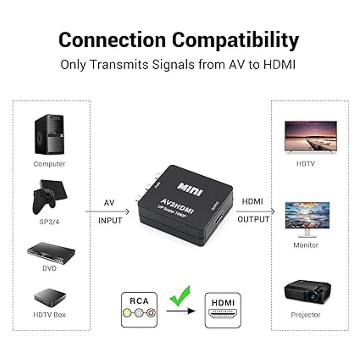 RCA to HDMI Converter: This RCA to HDMI can convert analog RCA composite input to HDMI 1080P 60HZ output. Making video come alive, giving the most realistic HD visual experience.