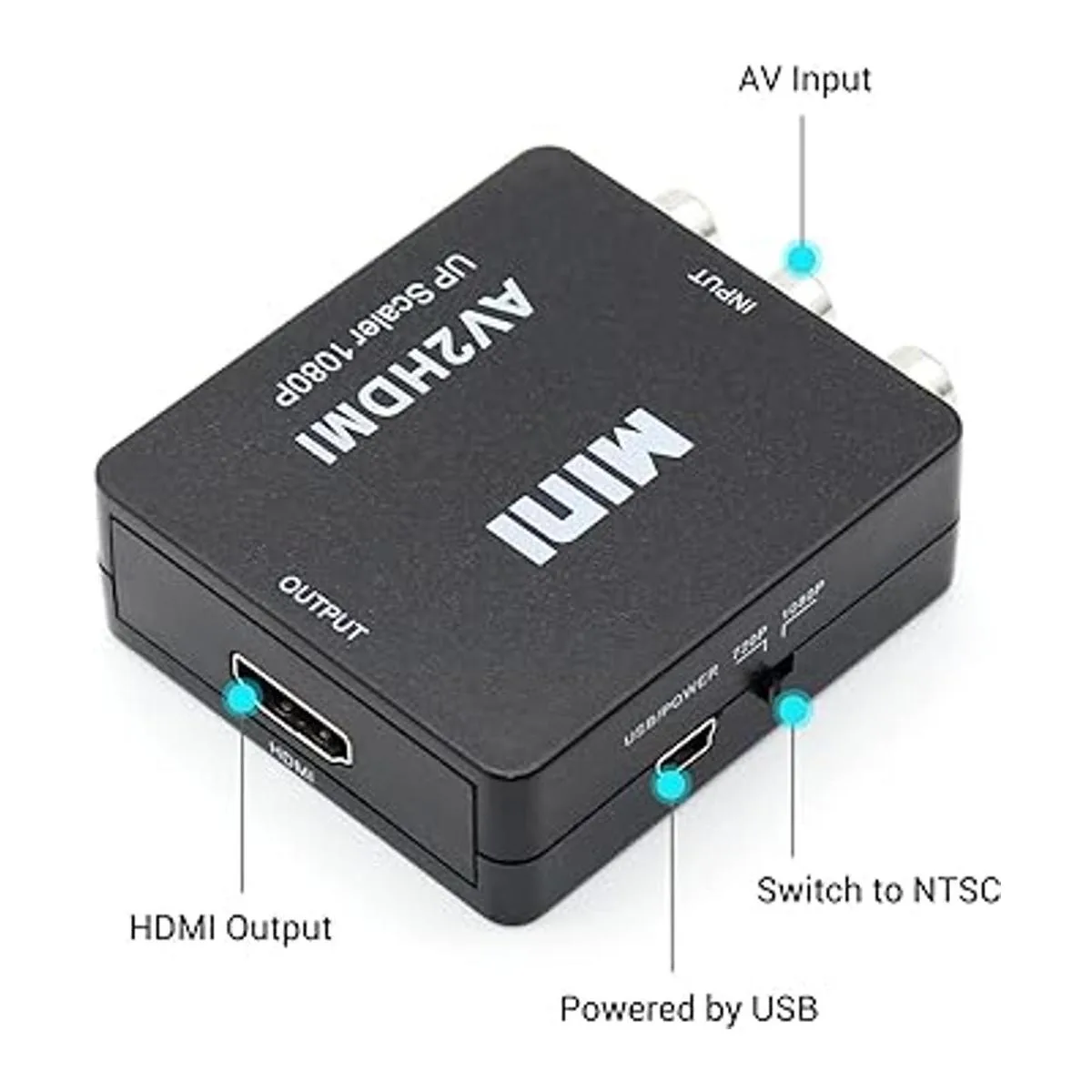 Composite to HDMI Converter:This Composite to HDMI converter has an build in authentic HD chip which supports advanced signal processing with resolutions scale, Plug and Play, Easy to Install and Operate, Powered by External USB Cable. Note: Please hook up the USB power cable included to 5V 1Apower source during use