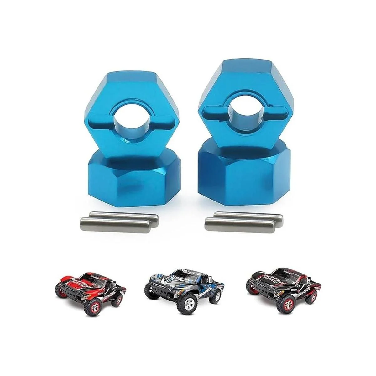 RCAWD Ruedas hexagonales de 0.472 in con pasadores de tornillo, 4 piezas para 110 Traxxas Slash 2WD adaptador de cubo de rueda hexagonal 58024, 58034, rueda de carrera corta Hex, 0.276 in, 0.217 in, ruedas y neumáticos hexagonales RC delanteros y traseros de aluminio azul