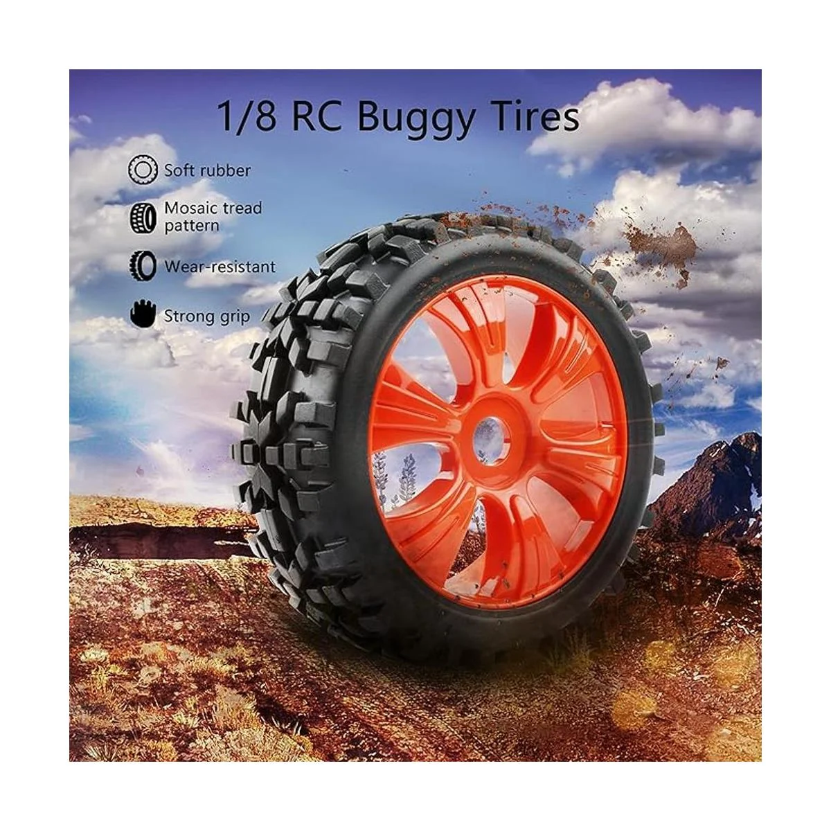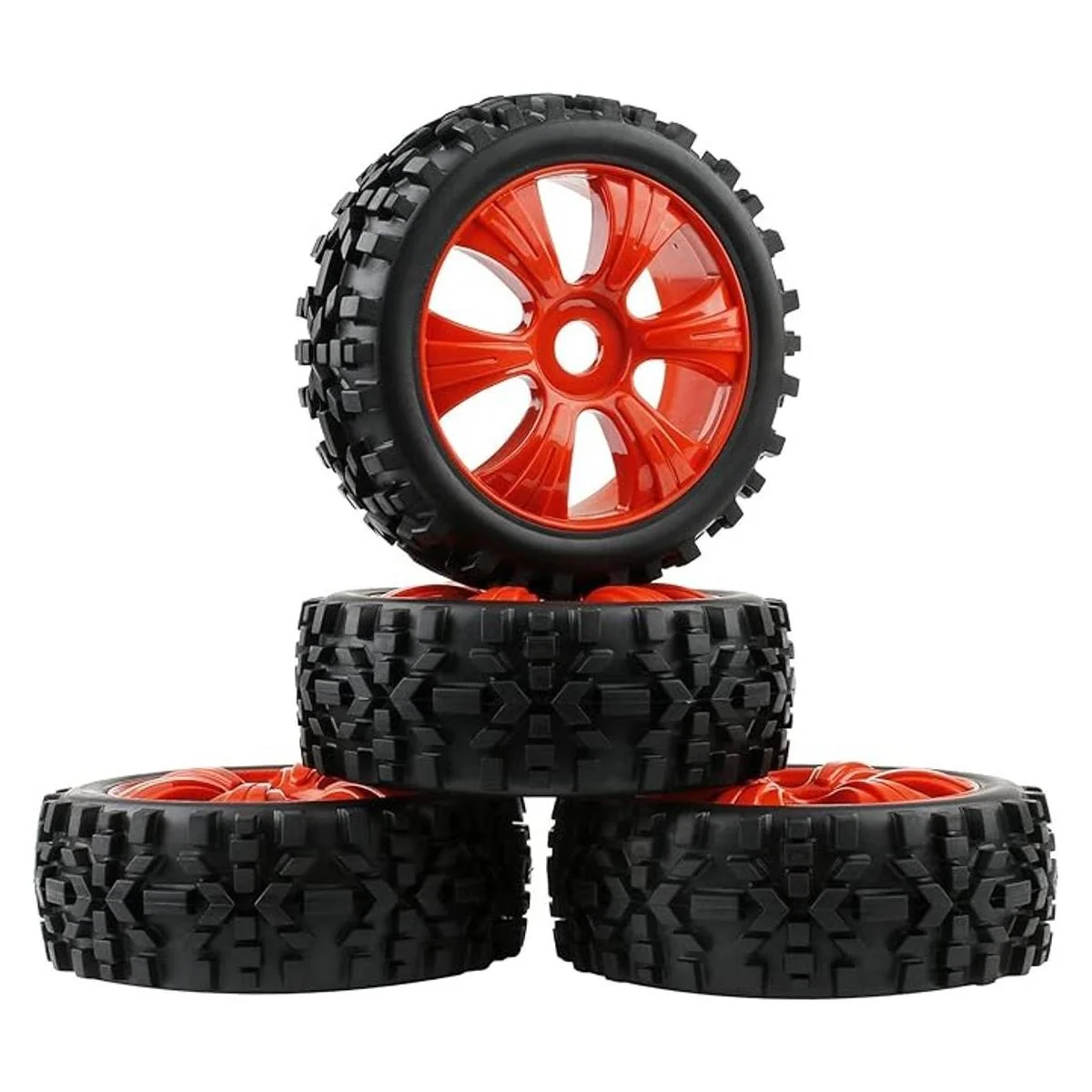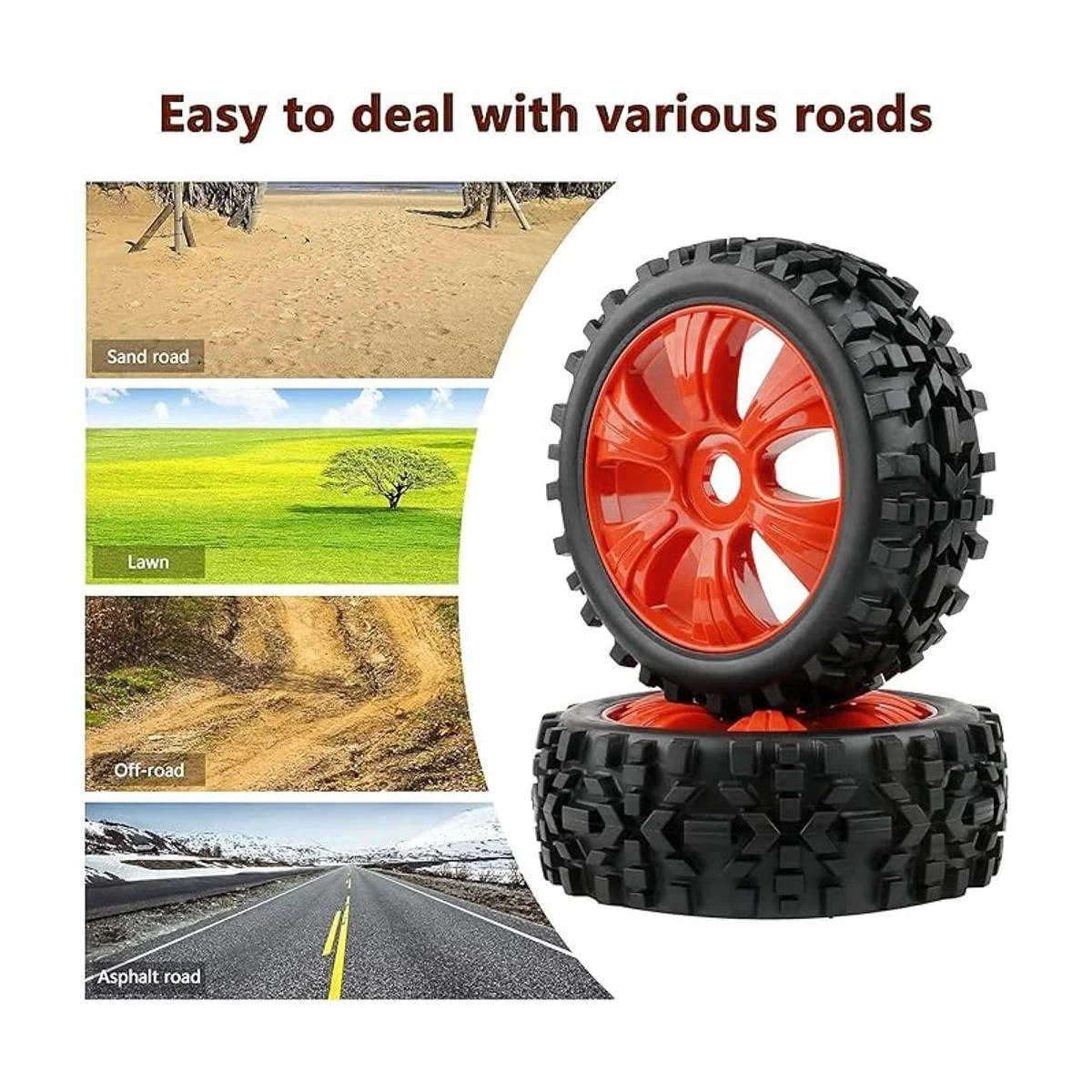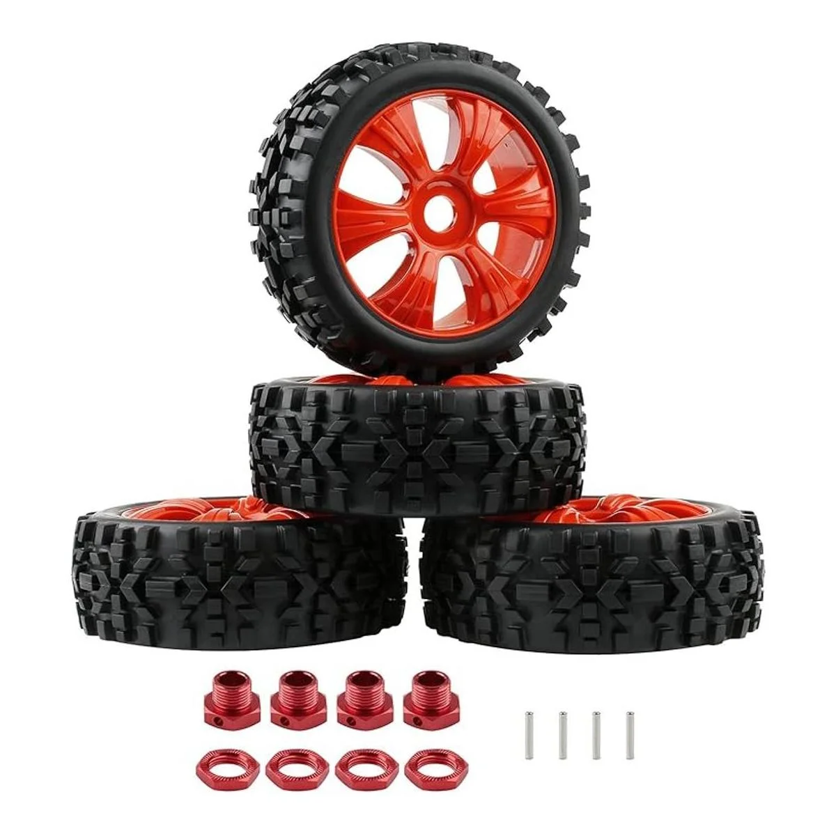 Rchobbytop 4 unids todo terreno neumáticos y 0.669 in llantas adaptadores tuercas para 18 Buggy corto curso Rally Traxxas Redcat Exceed RC TLR Arrma HSP HPI etc, rojo