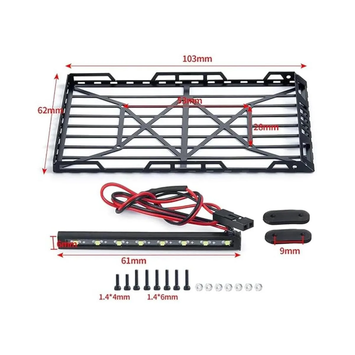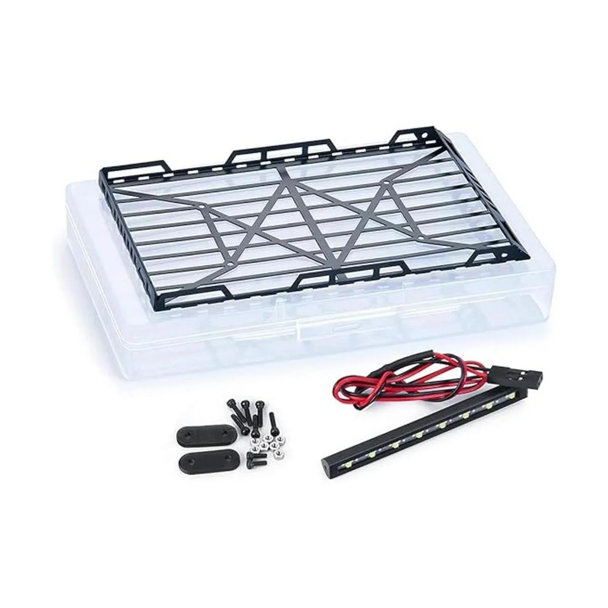 RCHub Portaequipajes y focos de acero inoxidable para vehículos RC 124 Axial SCX24 90081 AXI0002, color negro