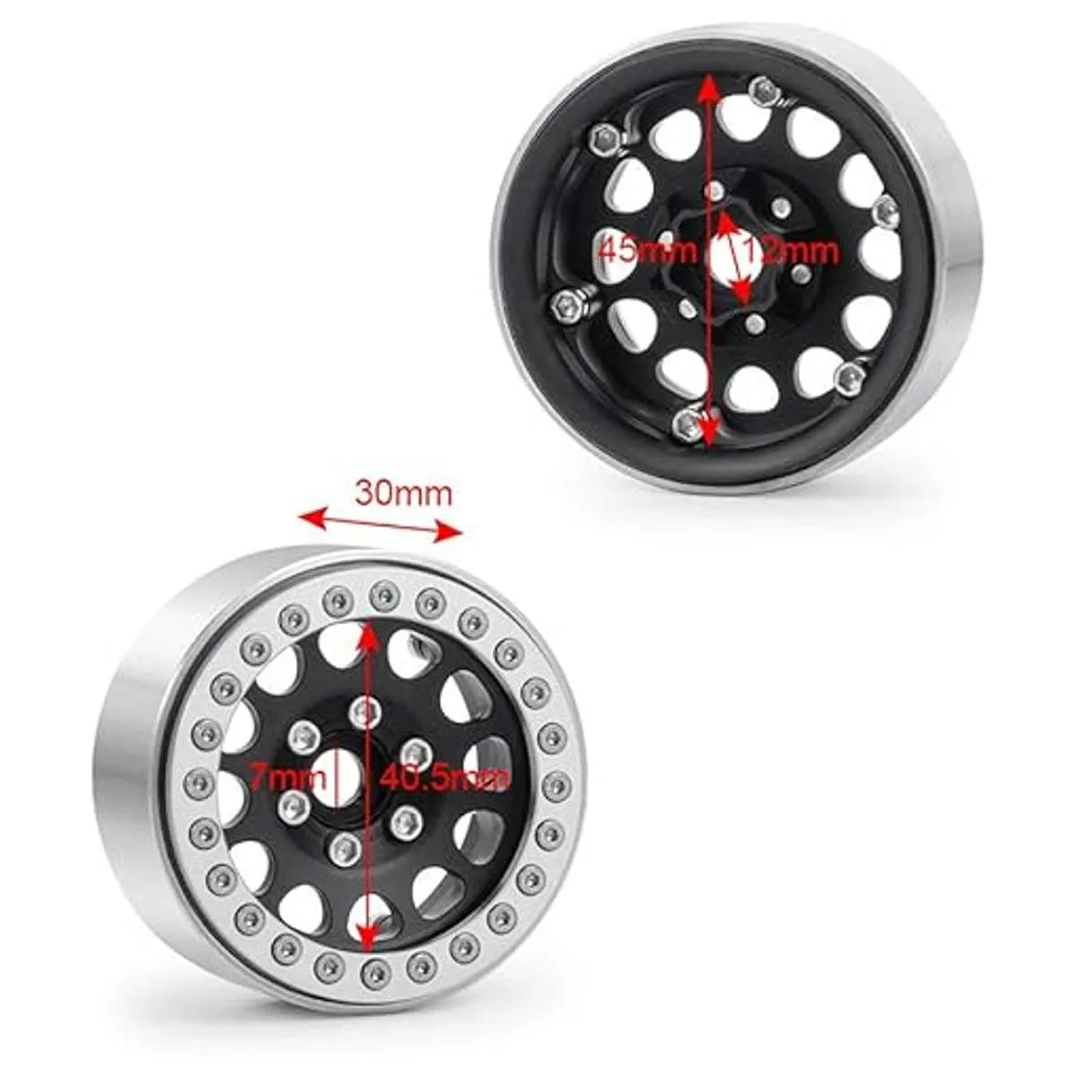 RCLIONS 4 llantas Beadlock de aleación de aluminio de 1.9 pulgadas para TRX4, SCX10 III AXI03007, SCX10ii, D90 escala 110 RC Crawler Car
