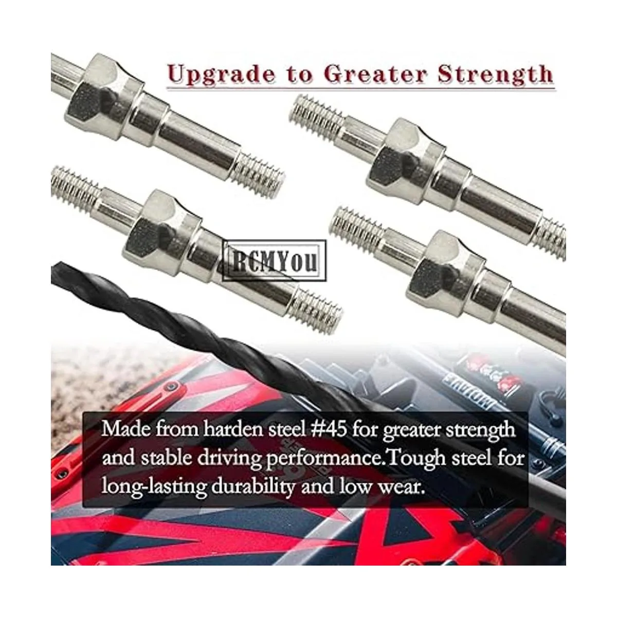 Fácil de instalar: el eje de transmisión CVD se puede instalar directamente, necesita cualquier modificación. Roscas M3 cortadas con precisión para la instalación de accesorios de fijación. Se suministra en un juego de cuatro con tuercas de bloqueo con brida para fijación a torres de choque.
