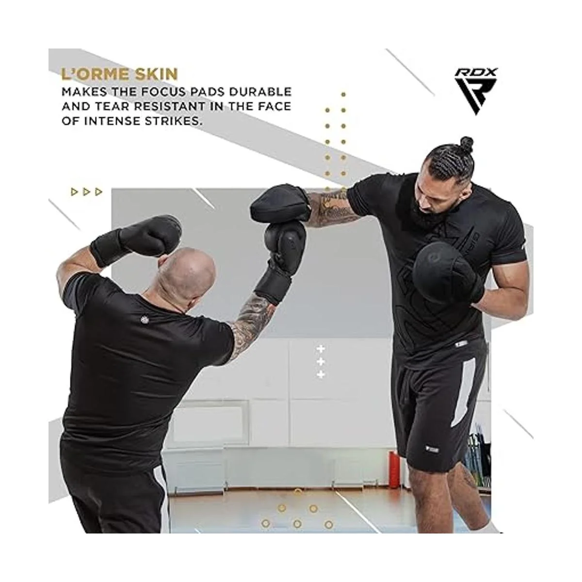 Entrenamiento de precisión mejorado: las almohadillas de enfoque RDX están diseñadas para mejorar el enfoque y son muy adecuadas para entrenar a los luchadores en golpes de precisión. Con un objetivo en movimiento, estos guantes de enfoque proporcionan un régimen de entrenamiento mejorado en boxeo, Muay Thai, Kickboxing, MMA, Jiu Jitsu brasileño, Karate y otros deportes similares.