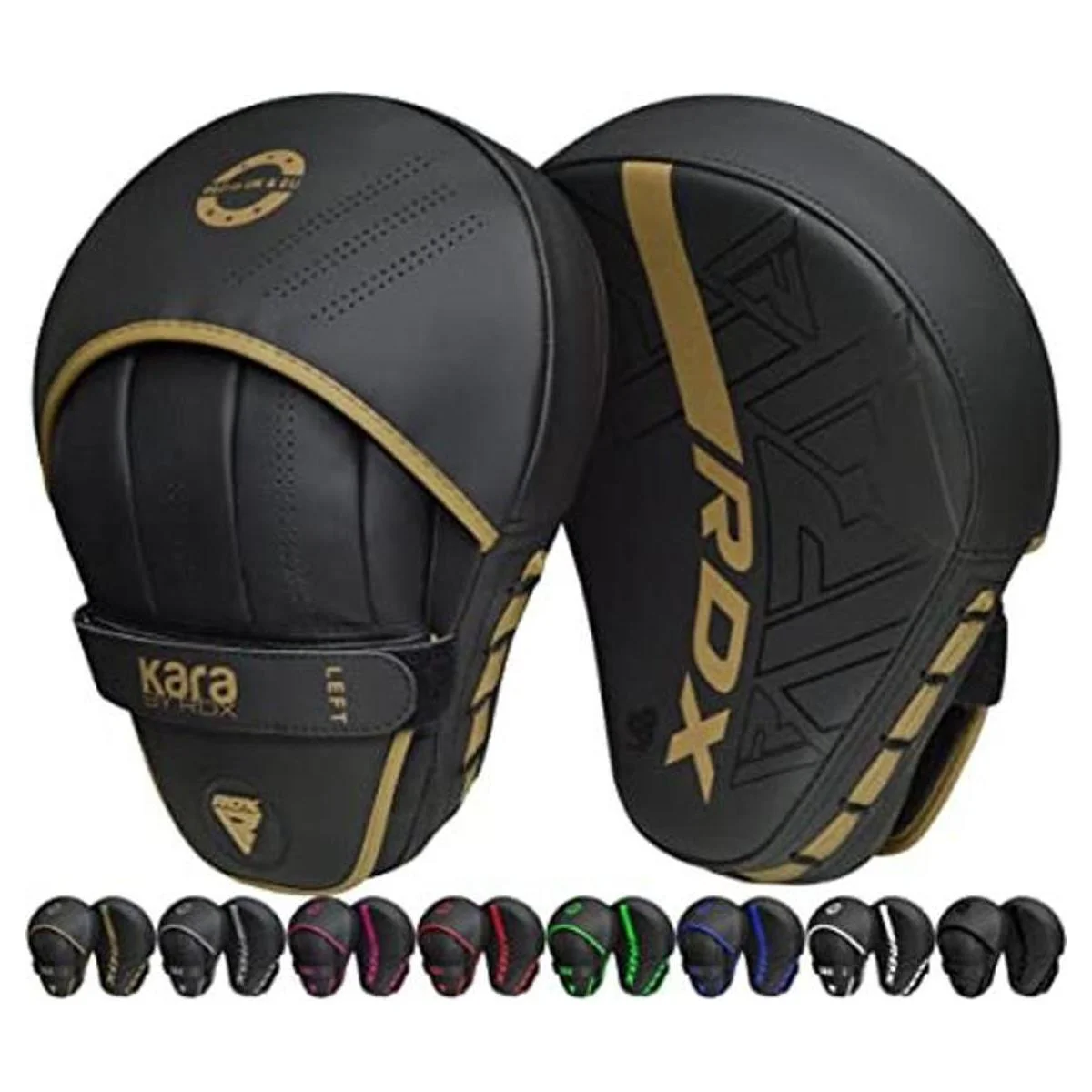 RDX Almohadillas de boxeo, guantes curvados de enfoque, almohadillas de entrenamiento Maya Hide de cuero con gancho Kara y jab de entrenamiento, correa ajustable ventilada, MMA Muay Thai Kickboxing, entrenamiento, artes marciales, perforación, mano, escudo de golpe