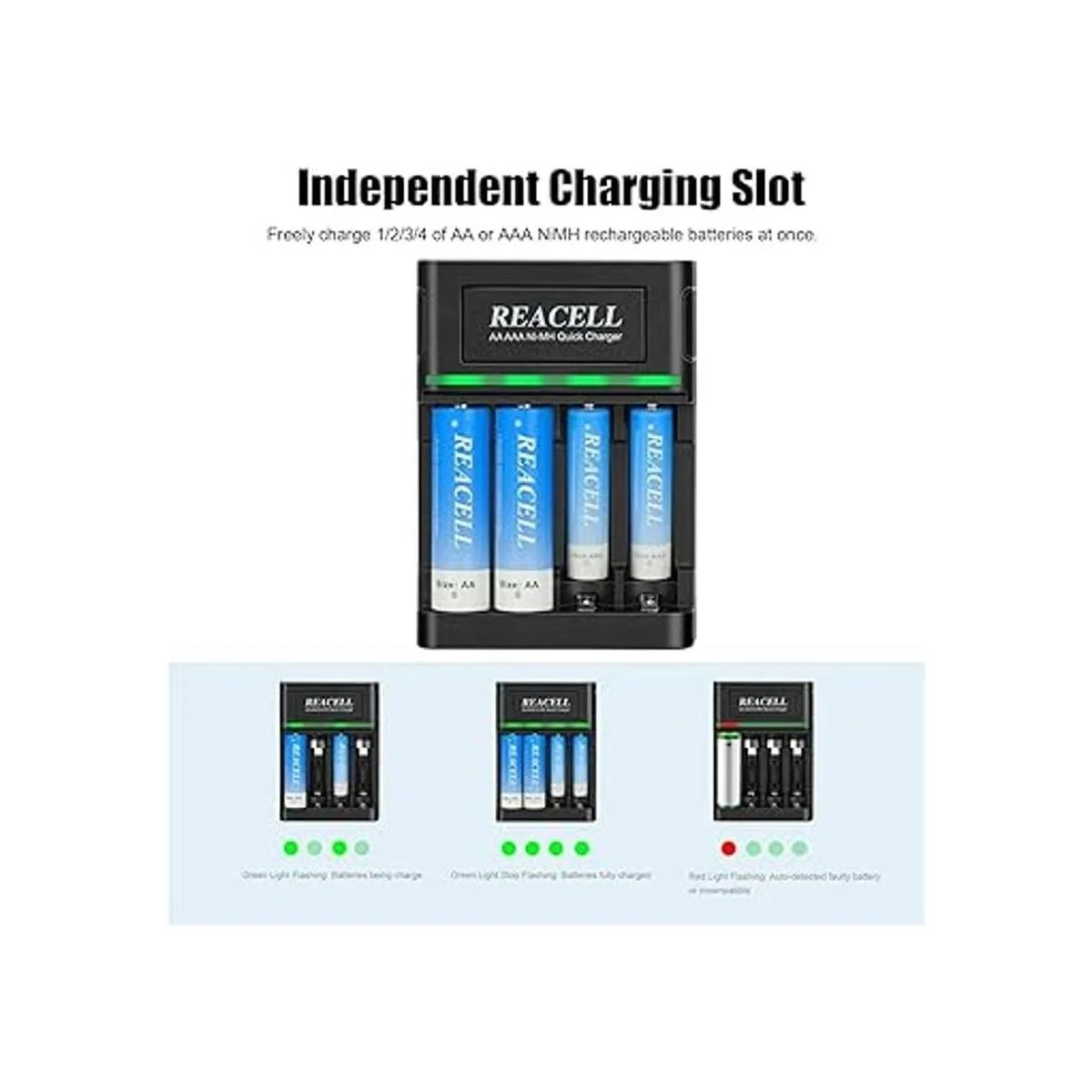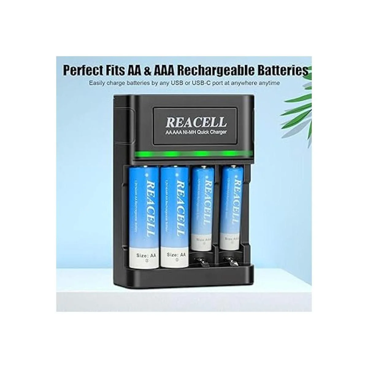 REACELL Cargador de batería de 1 hora para pilas recargables AA AAA NiMH, tipo C y entrada micro USB para baterías dobles A y triple A cargador súper rápido