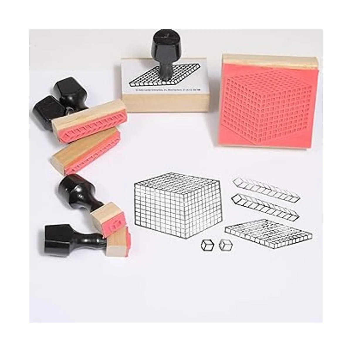 READY 2 LEARN Base de 10 sellos de bloque, juego de 6, sellos de madera para actividades matemáticas tempranas y bricolaje, uso para tarjetas, hojas de trabajo, tareas y álbumes de recortes