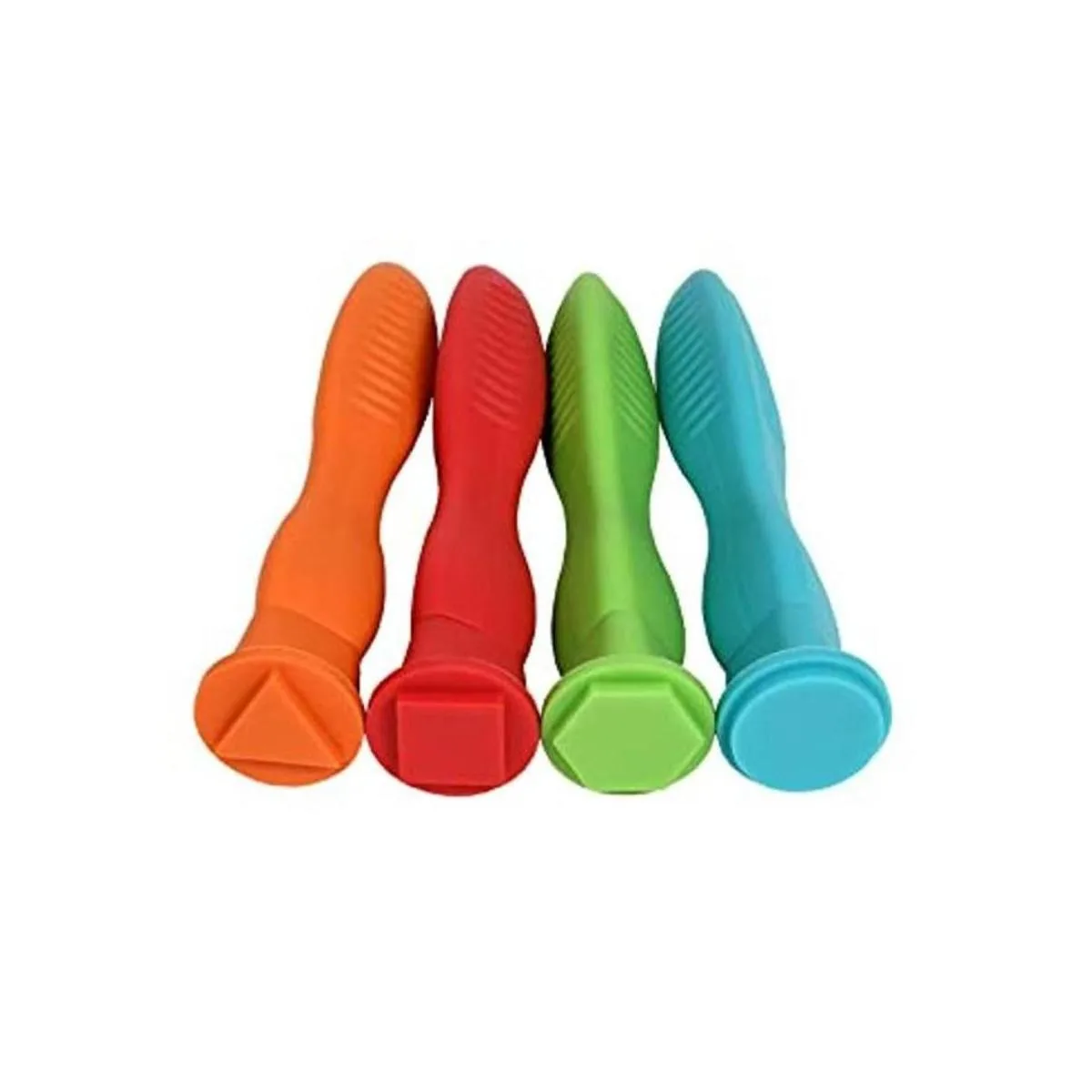 4 formas diferentes: este juego de sellos incluye 4 asas largas triangulares con diferentes formas geométricas elevadas en un extremo: círculo, cuadrado, triángulo y hexagonal