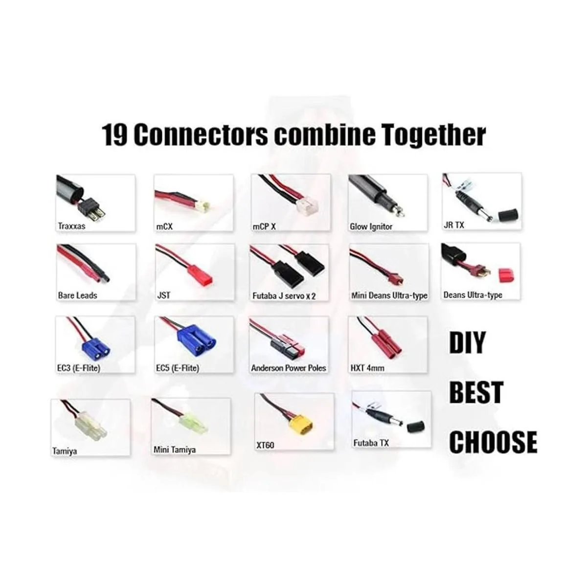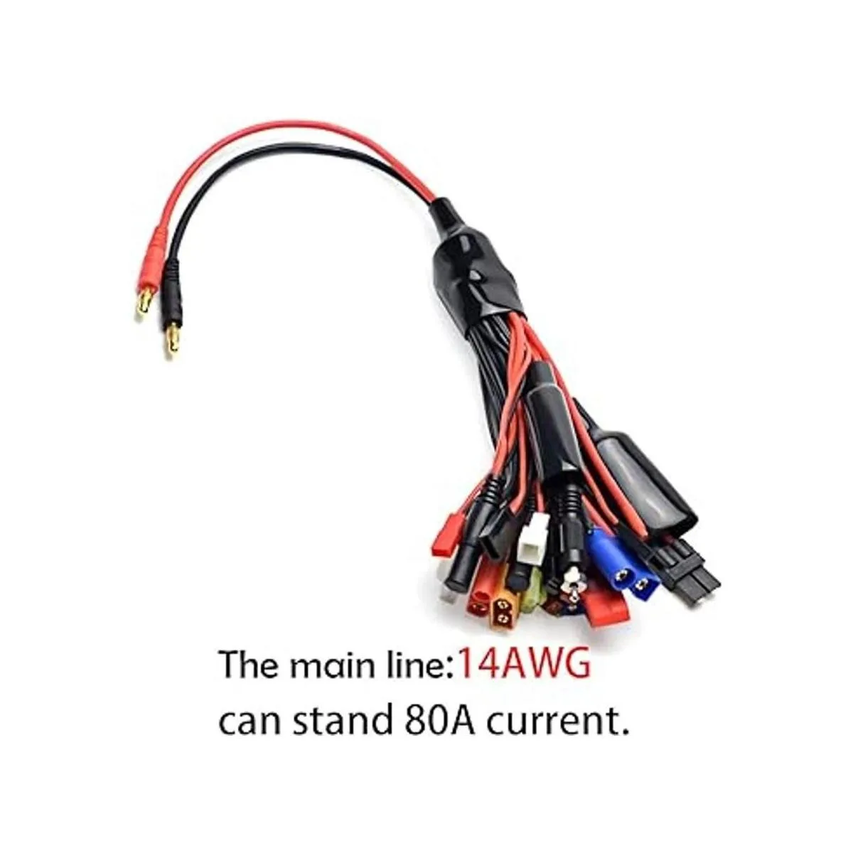 Readytosky 19 en 1 Lipo cargador de batería adaptador convertir cable Banana Plug a JSTTPlugXT60EC3EC5HXT 0.157 in para RC coche Drone