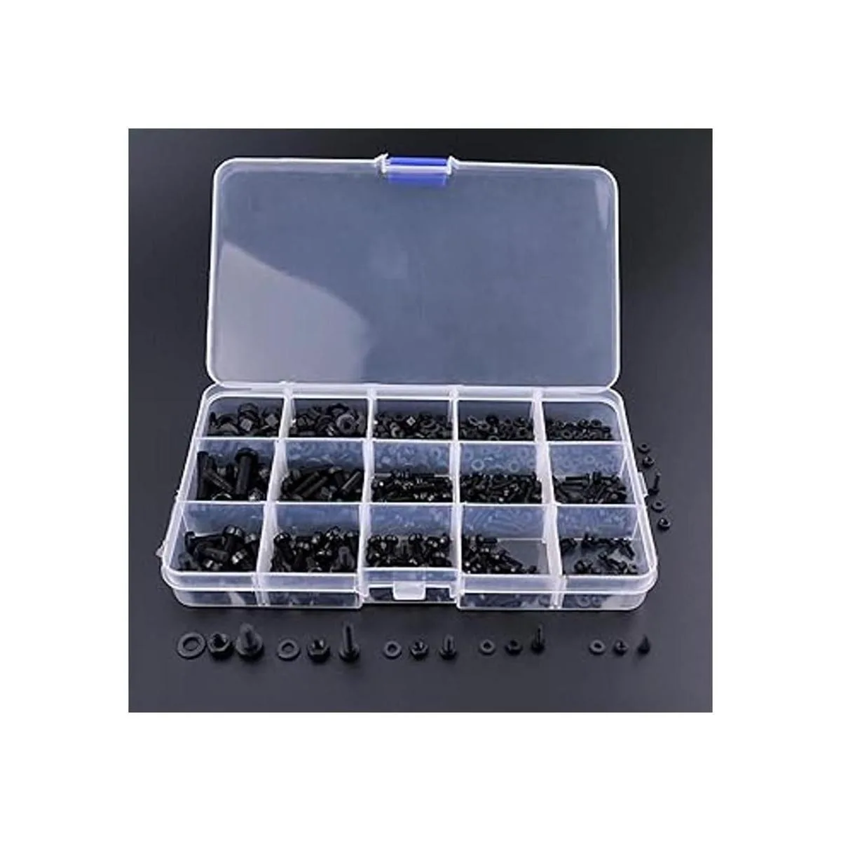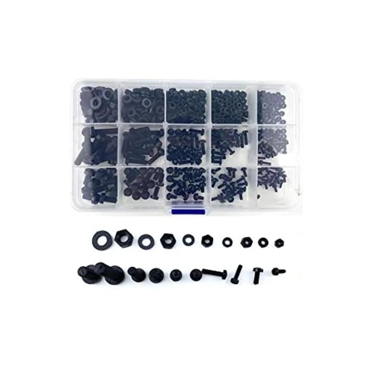 Kit surtido de 510 tornillos métricos M2 M2.5 M3 M4 M5 de nailon negro Phillips de cabeza plana de arandela plana.