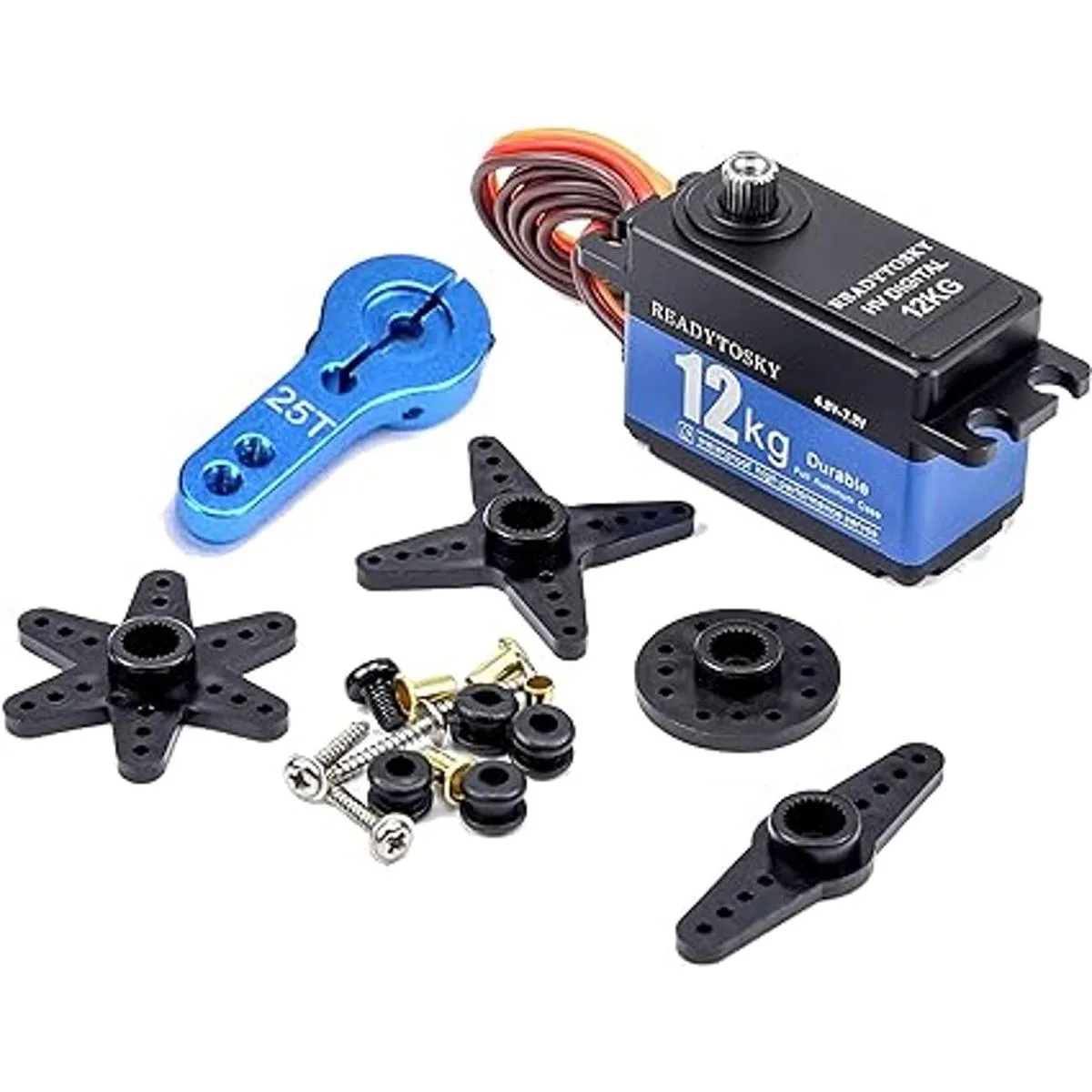 Readytosky Servo de 26.5 lbs de alto par de torsión de 180 grados de engranaje de metal completo de perfil bajo y servo de dirección 25T para coche RC 110