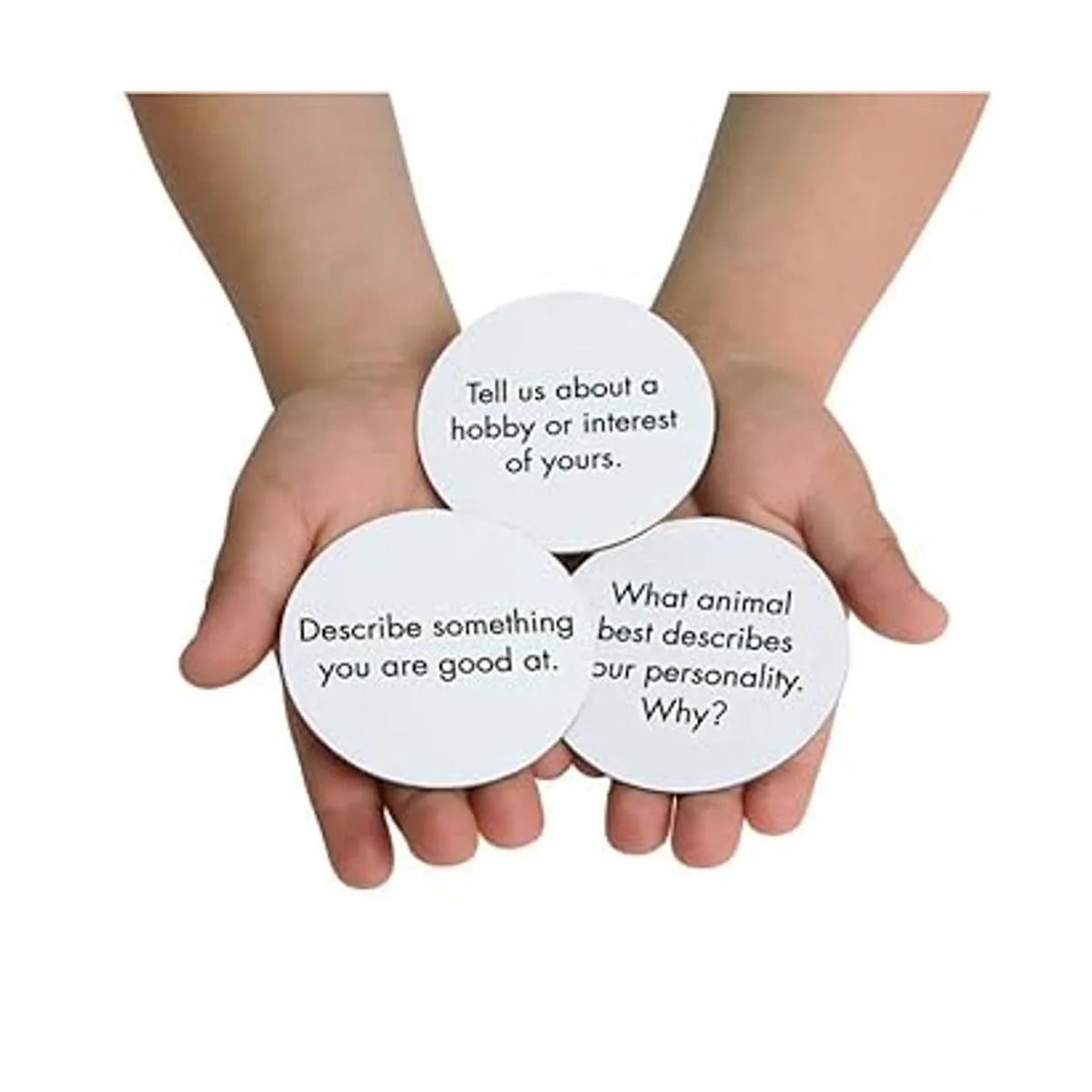 Really Good Stuff Fichas de reunión matutina para niños Iniciadores de conversación para preK hasta aulas primarias Los estudiantes aprenden y mejoran las habilidades de comunicación, escucha y vocabulario Resistente e impermeable Incluye 40 fichas únicas para reuniones, 2.4 in