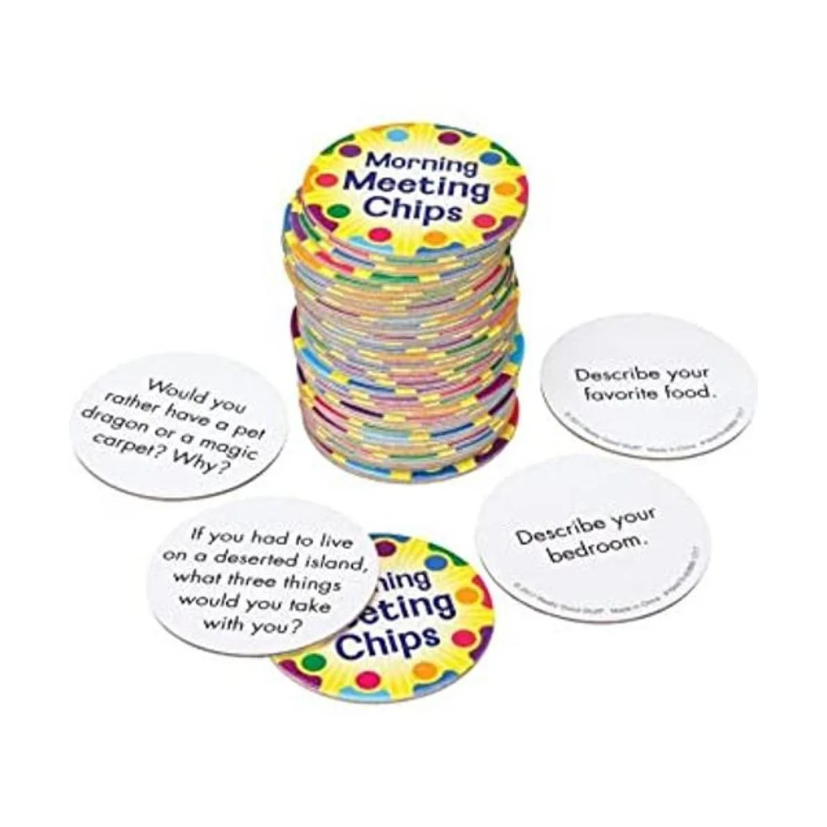 Variedad inteligente de usos: las fichas de reunión matutina no son solo para actividades de inicio del día. Son herramientas educativas que se pueden utilizar de una variedad de maneras. Haz que seleccionen un chip para usarlo como una escritura o un aviso de diario; deja que un recién llegado use un chip para comenzar su introducción de clase; rompe el hielo después de unas largas vacaciones o vacaciones; o llévalos en el autobús durante un viaje grupal.