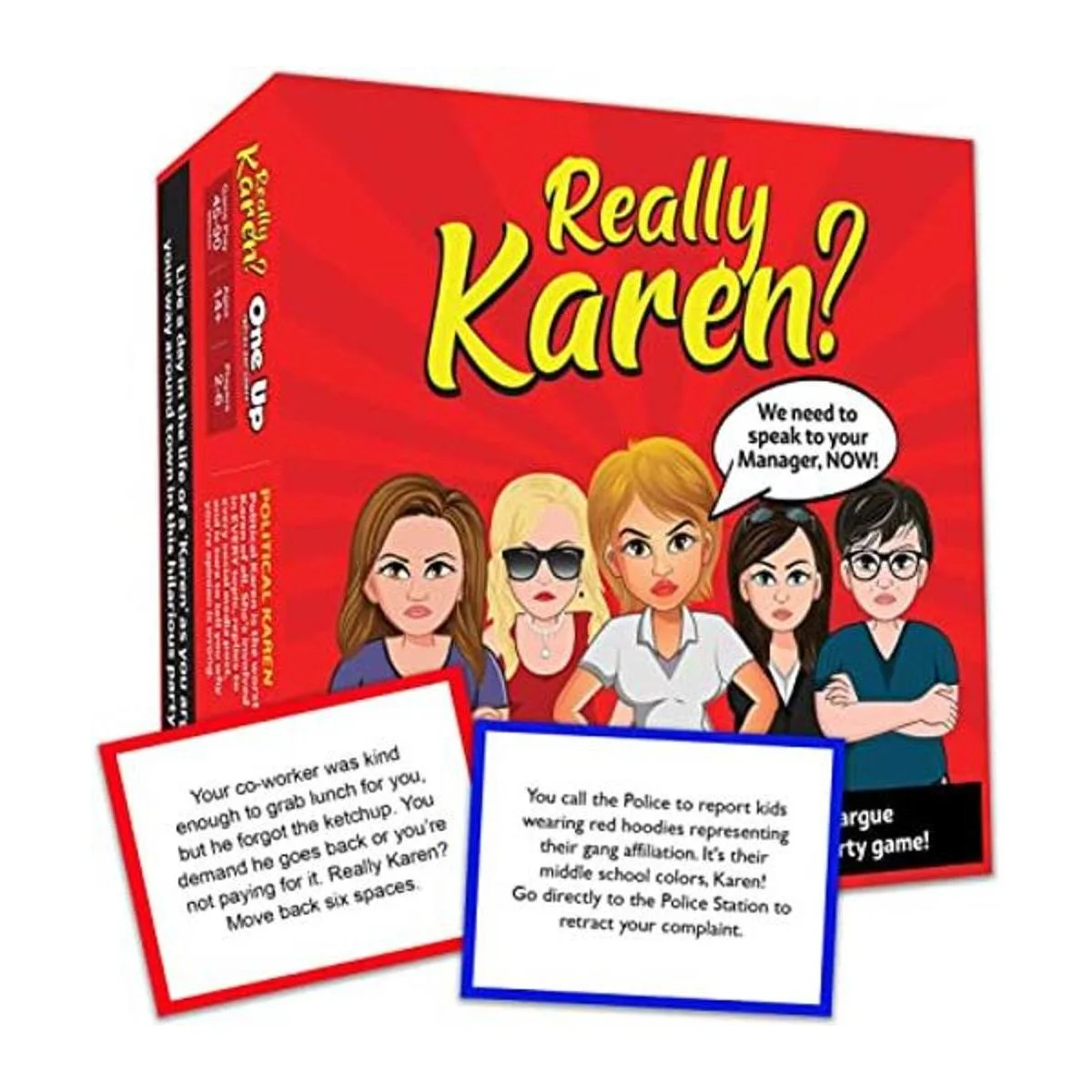 Really Karen Juego de mesa actualizado para 2022. Conviértete en Karen mientras discutes tu camino alrededor de la ciudad en este divertido juego de fiesta. Really Karen es un divertido juego nuevo para adultos a partir de 14 años.