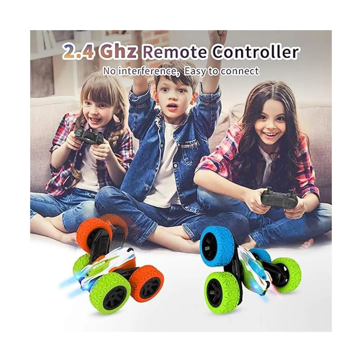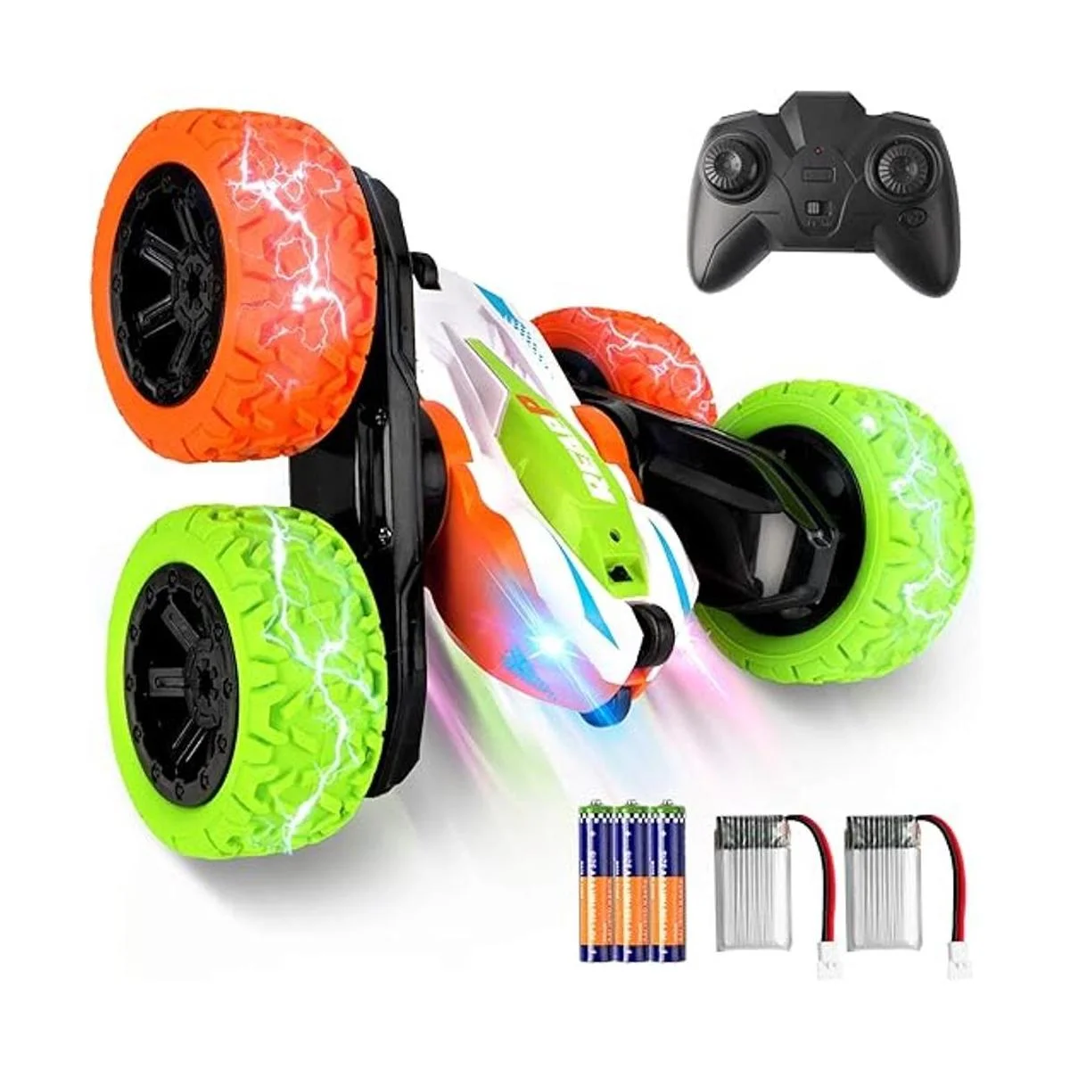 REAPP Auto de control remoto para niños, 2.4 GHz 4WD RC Stunt Car con faros, doble cara 360 grados Flips RC Cars Toy para niños y niñas, gran regalo para niños mayores de 4 años todas las baterías incluidas