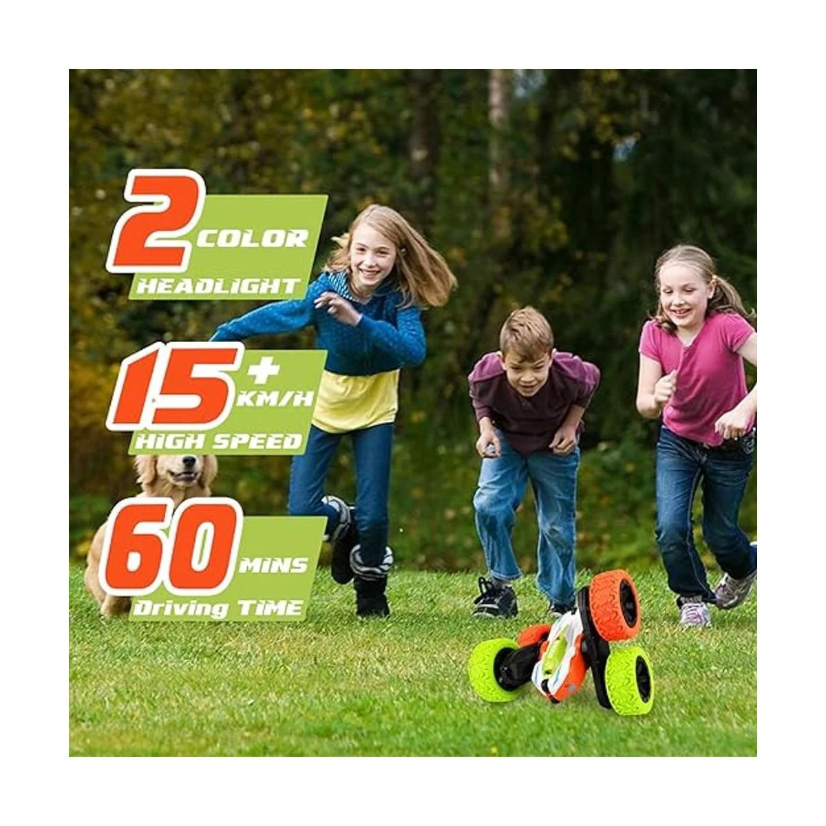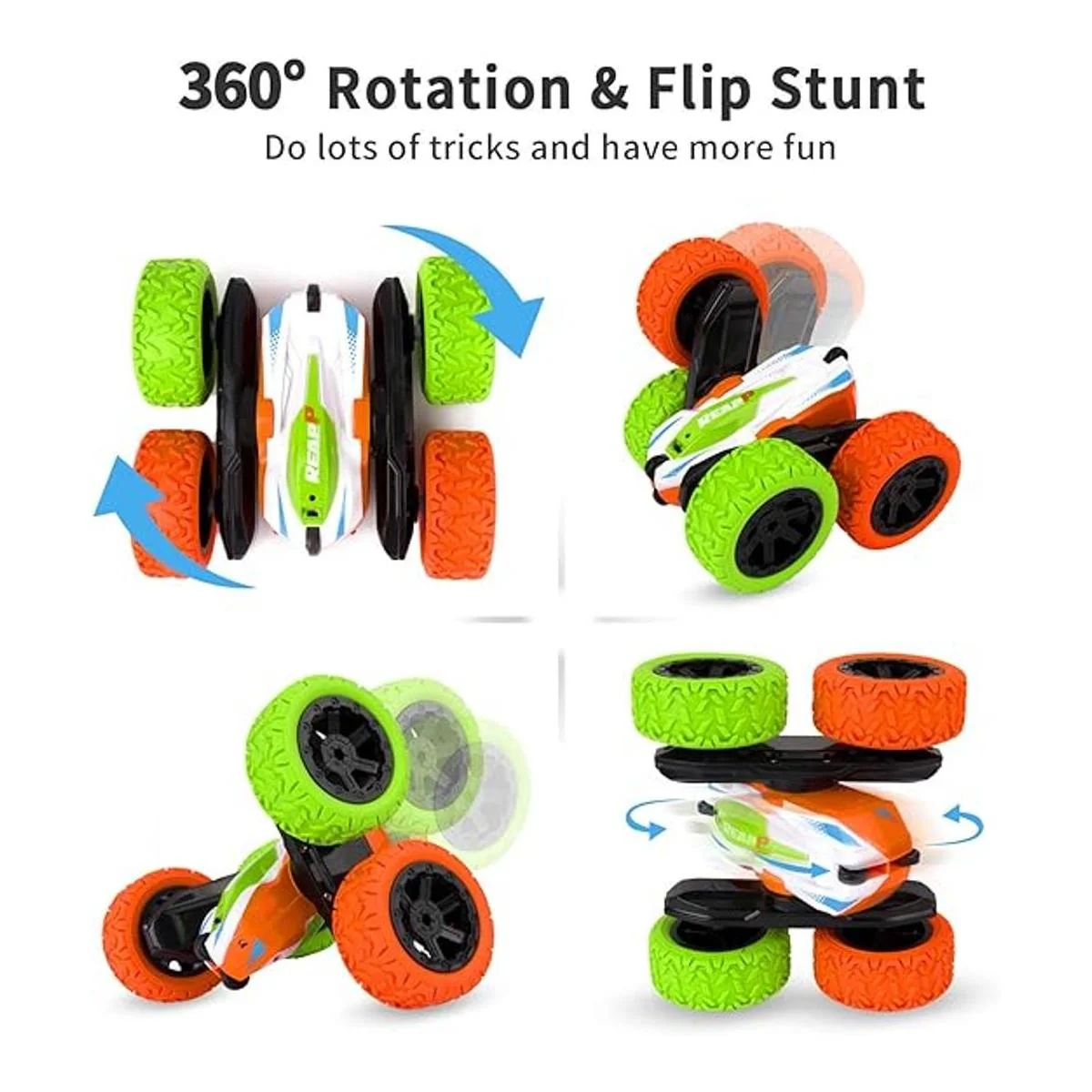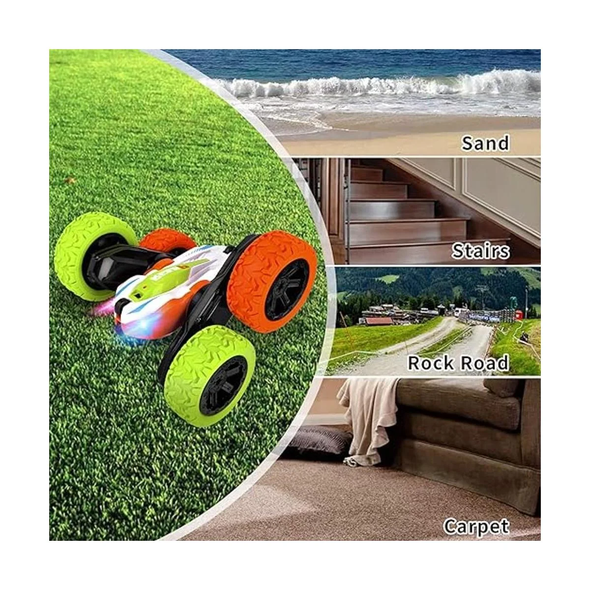Haz muchos trucos divertidos El coche de acrobacias con doble cara puede girar y girar 360. Tus hijos pueden jugar para correr hacia adelante, hacia atrás y girar a la izquierda, a la derecha, hacia arriba y hacia abajo con el controlador. Dale a tus hijos mucha diversión dentro o fuera.