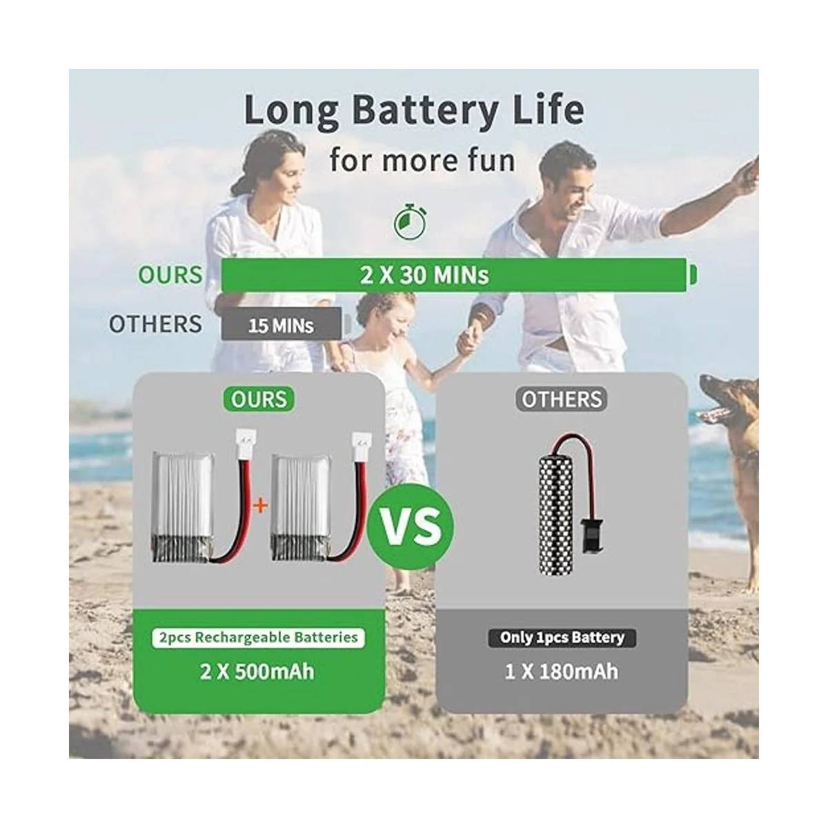 Gran duración de la batería, disfruta de más diversión: los coches RC vienen con todas las baterías, incluidas 2 baterías recargables de 500 mAh 3.7 V y 3 pilas AAA para controlador. Cada batería de 500 mAh puede durar 30 minutos. El tiempo total es de 60 minutos. Permite a los niños disfrutar de una diversión sin fin.