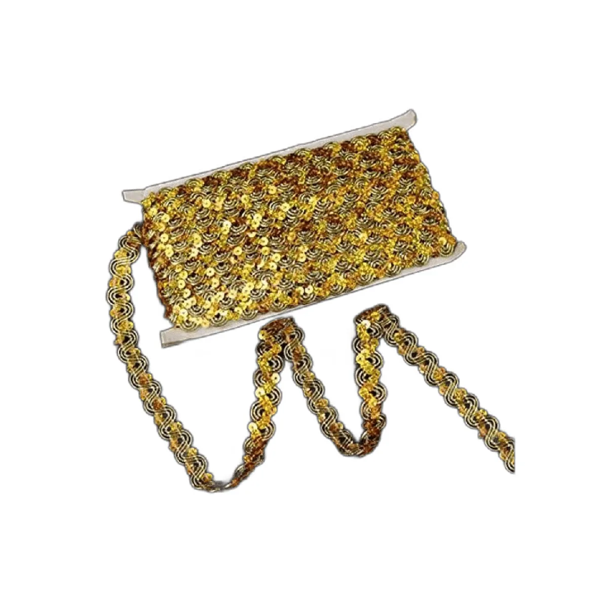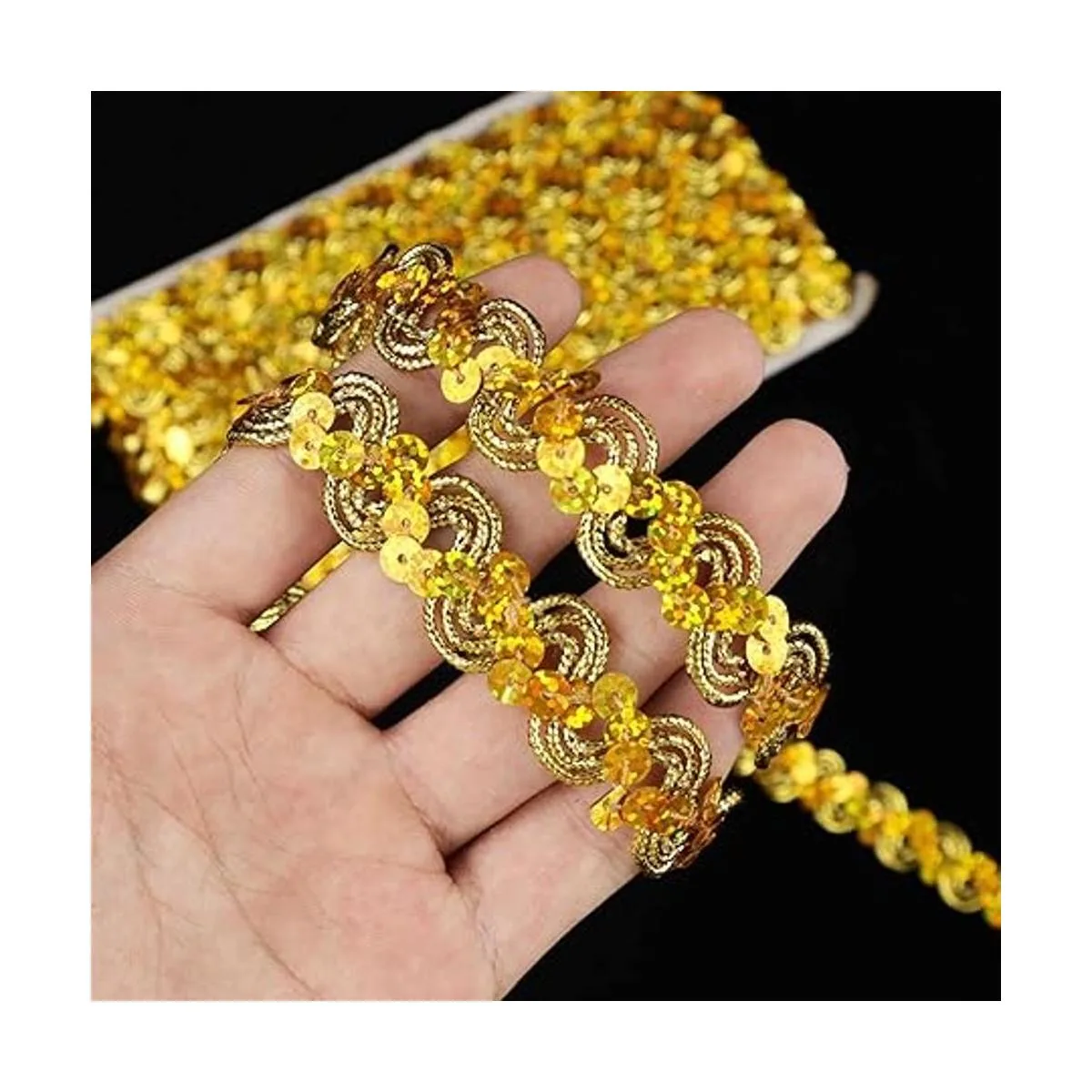 Reba RICIC Rac Borde festoneado de lentejuelas para costura, vestido, bolsa de sombrero, disfraces 7 yardas, dorado