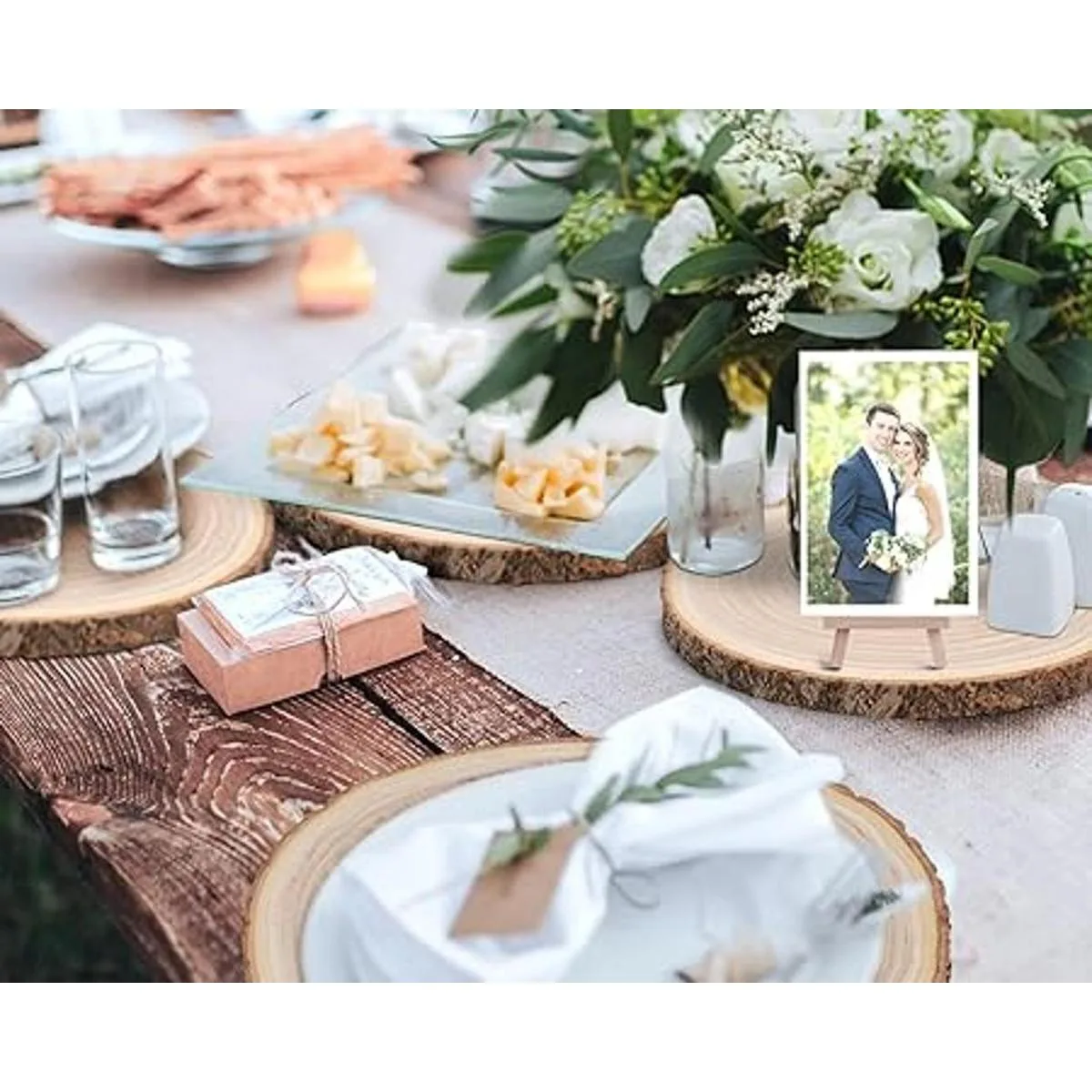 Centros de mesa de madera para centros de mesa: rodajas de madera de 12 a 14 pulgadas de diámetro, más grandes y más adecuados para centros de mesa, puede mostrar perfectamente todos los artículos, perfecto para bodas, baby shower, fiestas y otros centros de mesa.