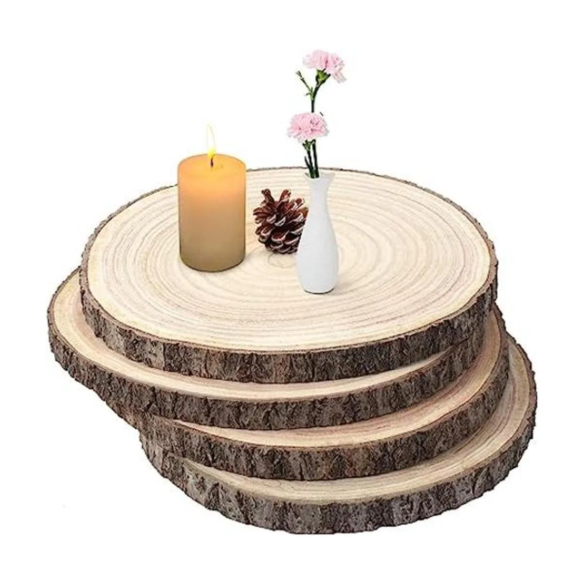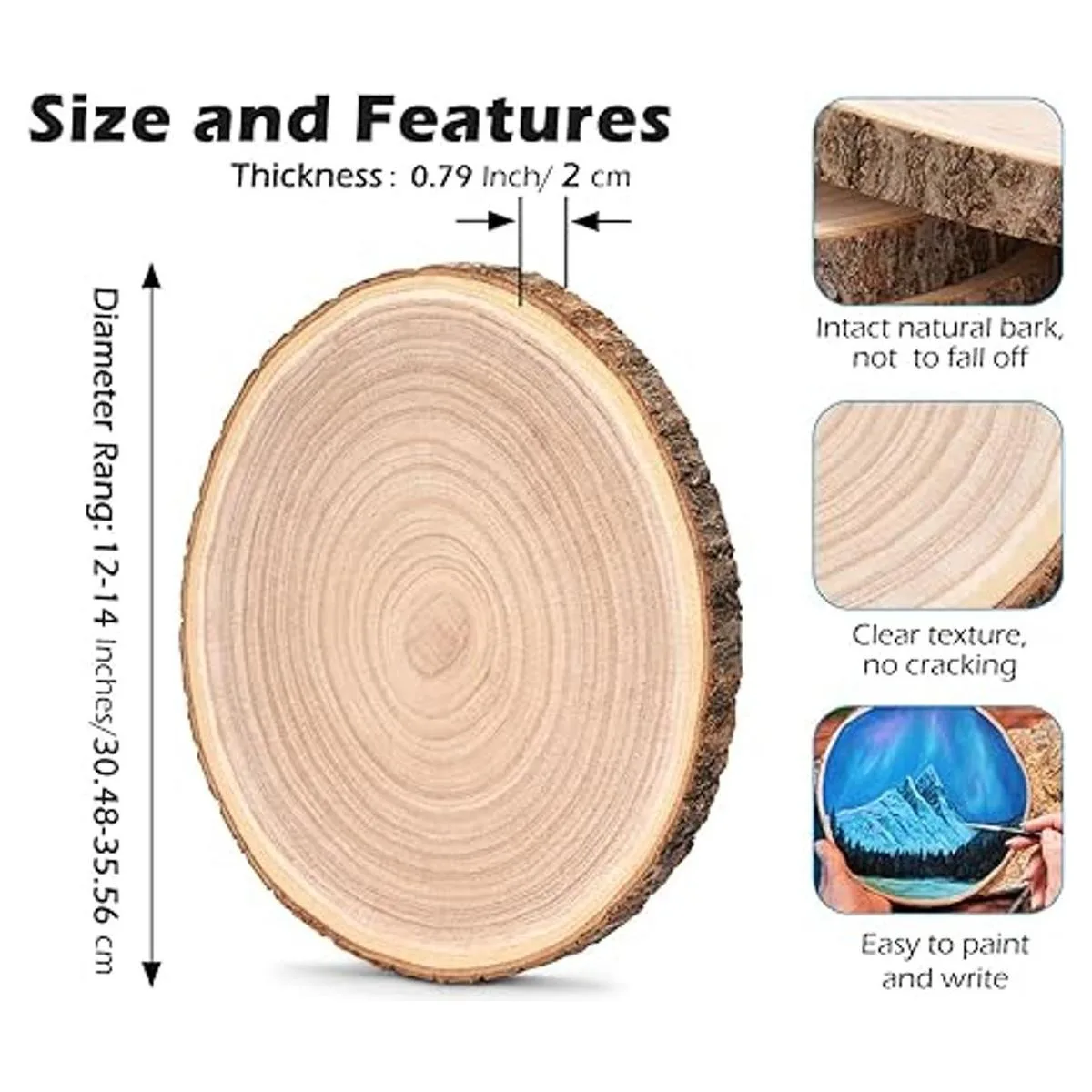Alta calidad: nuestras rodajas de madera están hechas de madera natural de Paulownia, es ligera, duradera con textura clara, la corteza está más intacta y menos agrietada que otras losas de madera en el mercado.