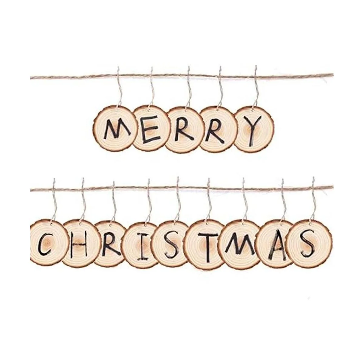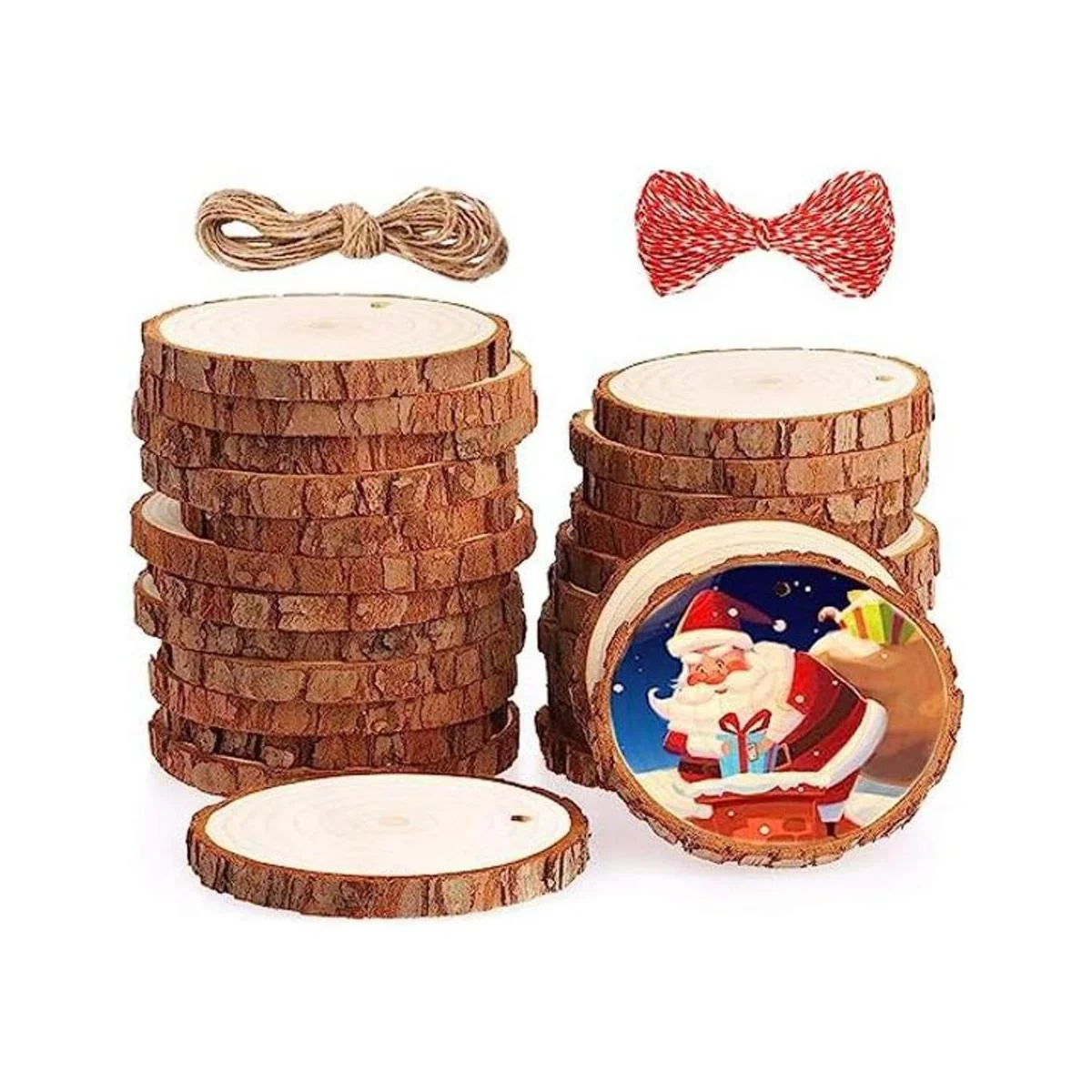 Rebanadas de madera natural para adornos de Navidad, 25 piezas DIY sin terminar Kit de artesanía de madera predrilled con agujero círculos de madera rebanadas de árbol para chimenea de árbol de Navidad hogar vacaciones colgantes decoraciones