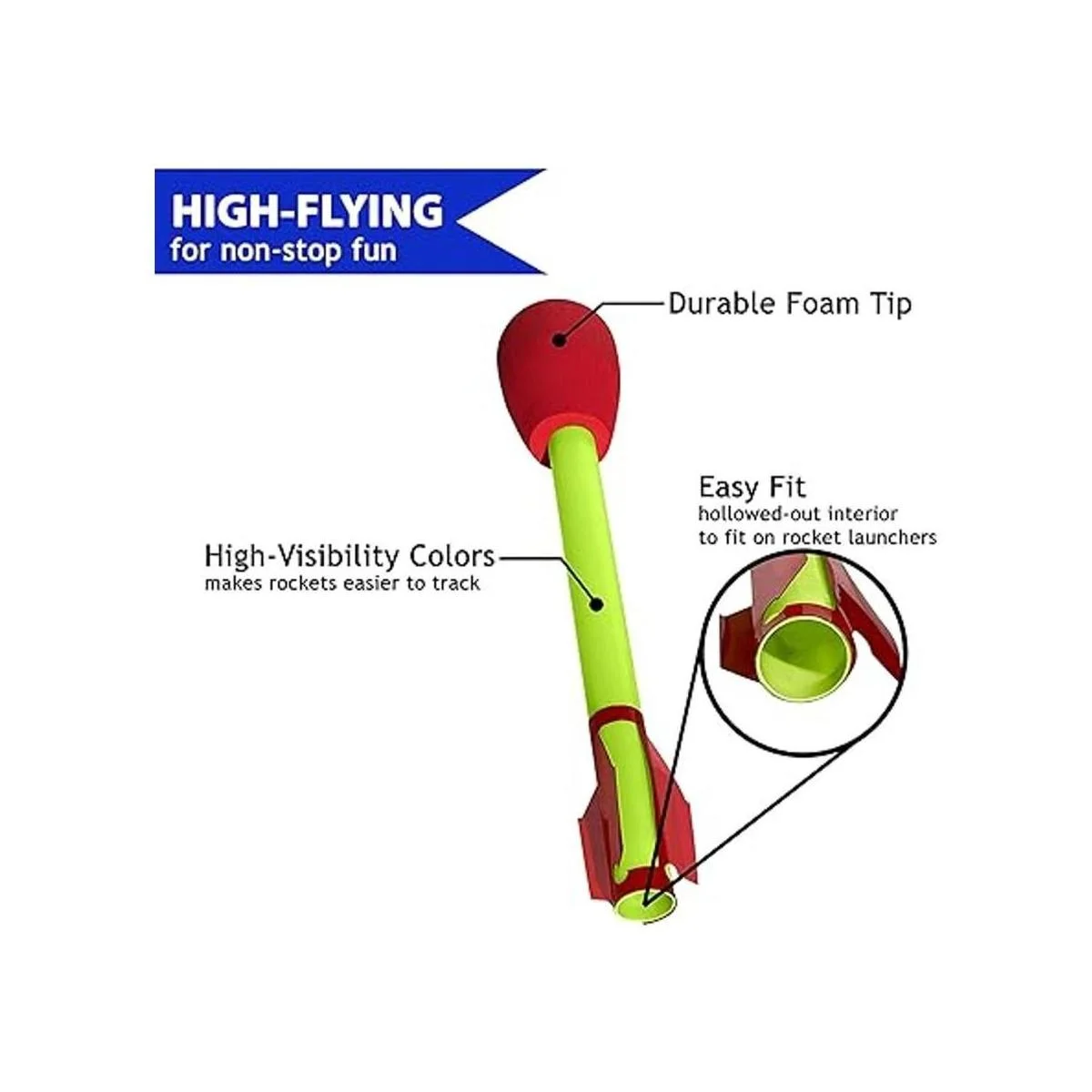 Mayor longitud del cohete: cohetes para niños diseñados con una mayor longitud de 115/8 pulgadas, lo que permite un manejo más fácil, seguimiento mejorado y lanzamiento óptimo de los recambios de cohete