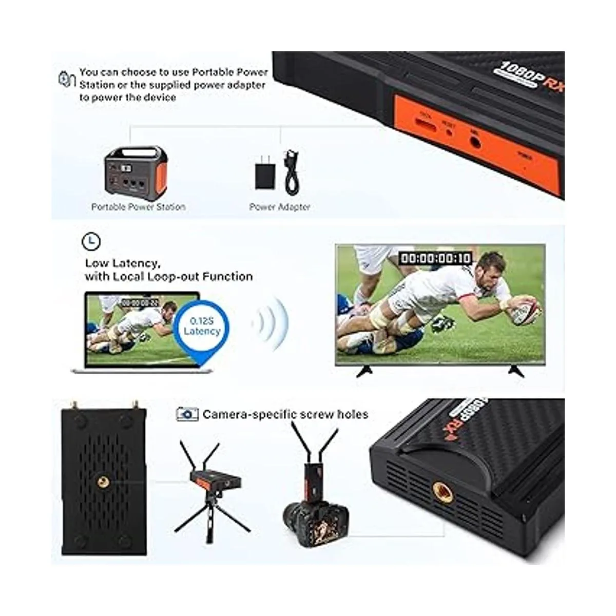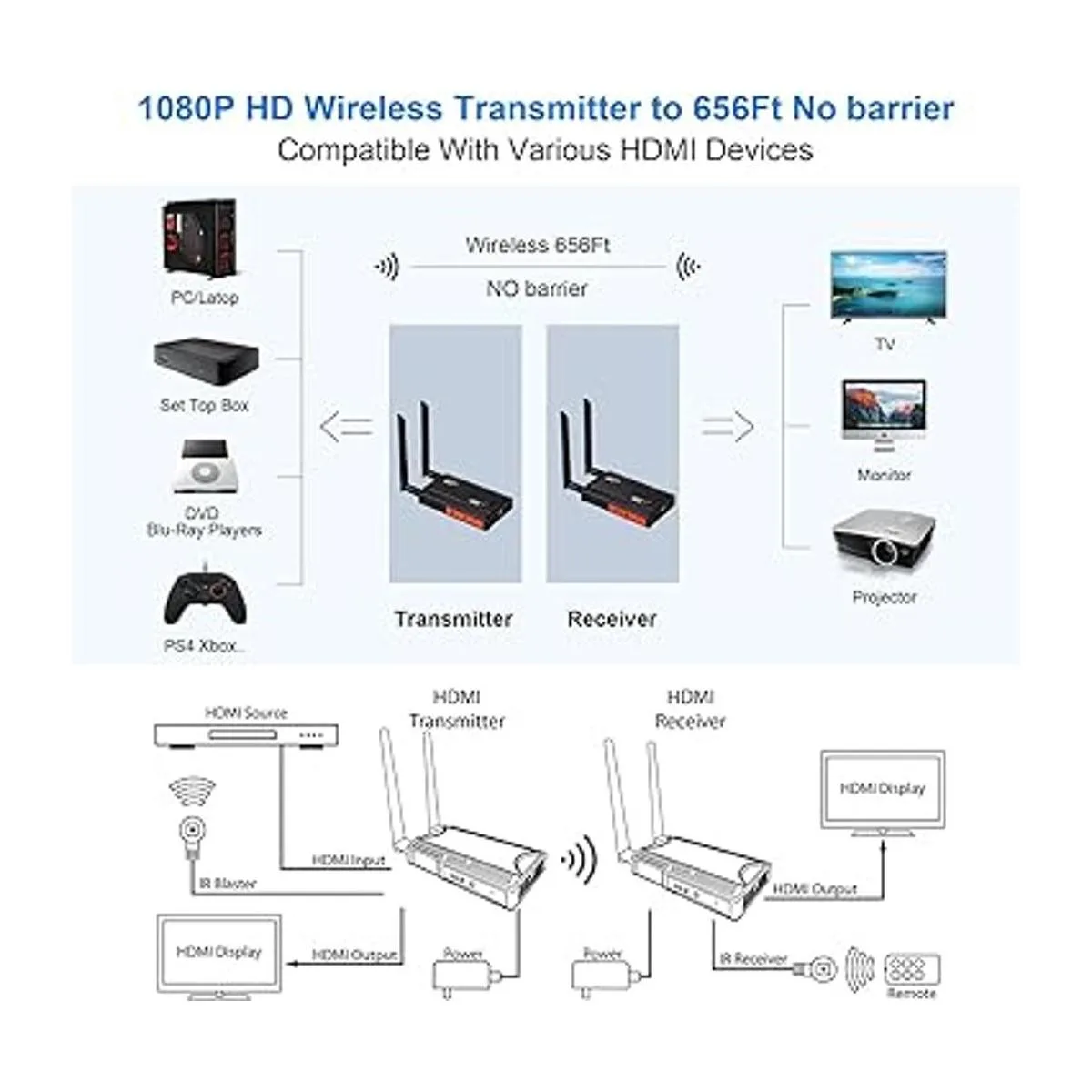 Receptor extensor HDMI inalámbrico, 1080P Full HD de 656.2 ft 656 pies compatible con 1 TX hasta 4 RXs Max, con bucle HDMI y control remoto IR para cámara DSLR, proyector portátil, iglesia, oficina en casa solo RX