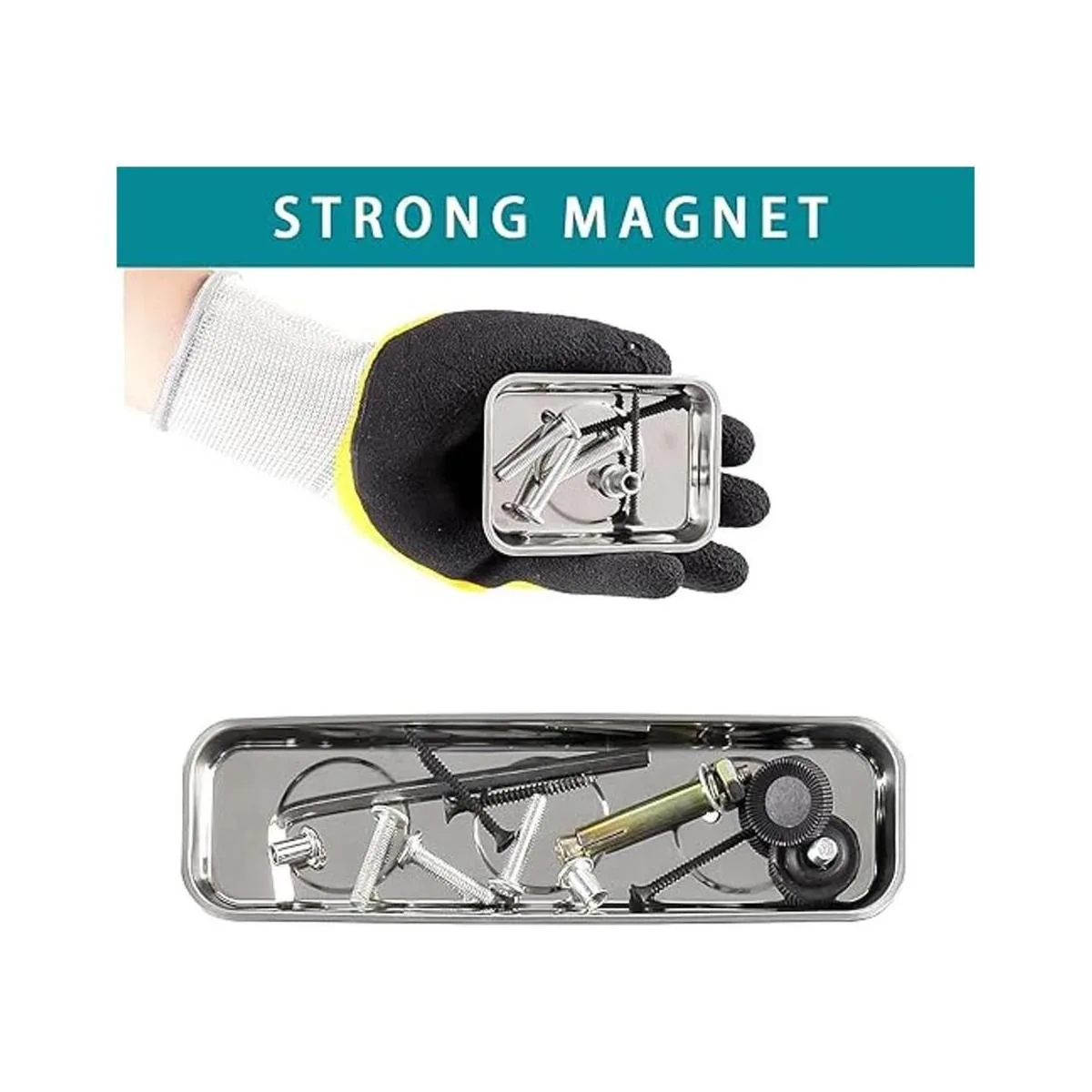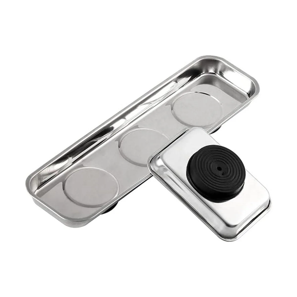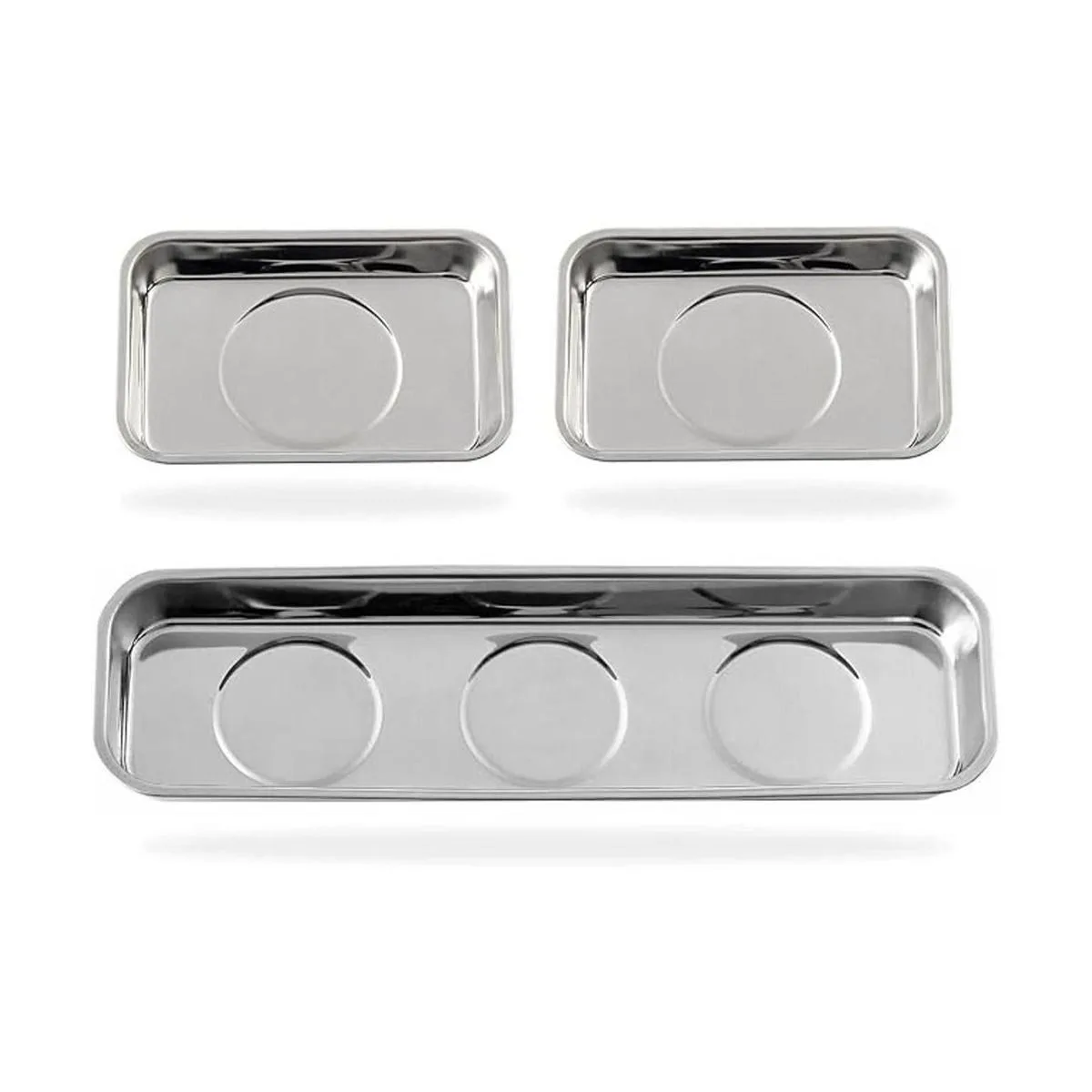Rechabite Juego de 3 bandejas magnéticas de acero inoxidable para herramientas, soporte para tornillos, enchufes, pernos, pines, mecánico y automotriz