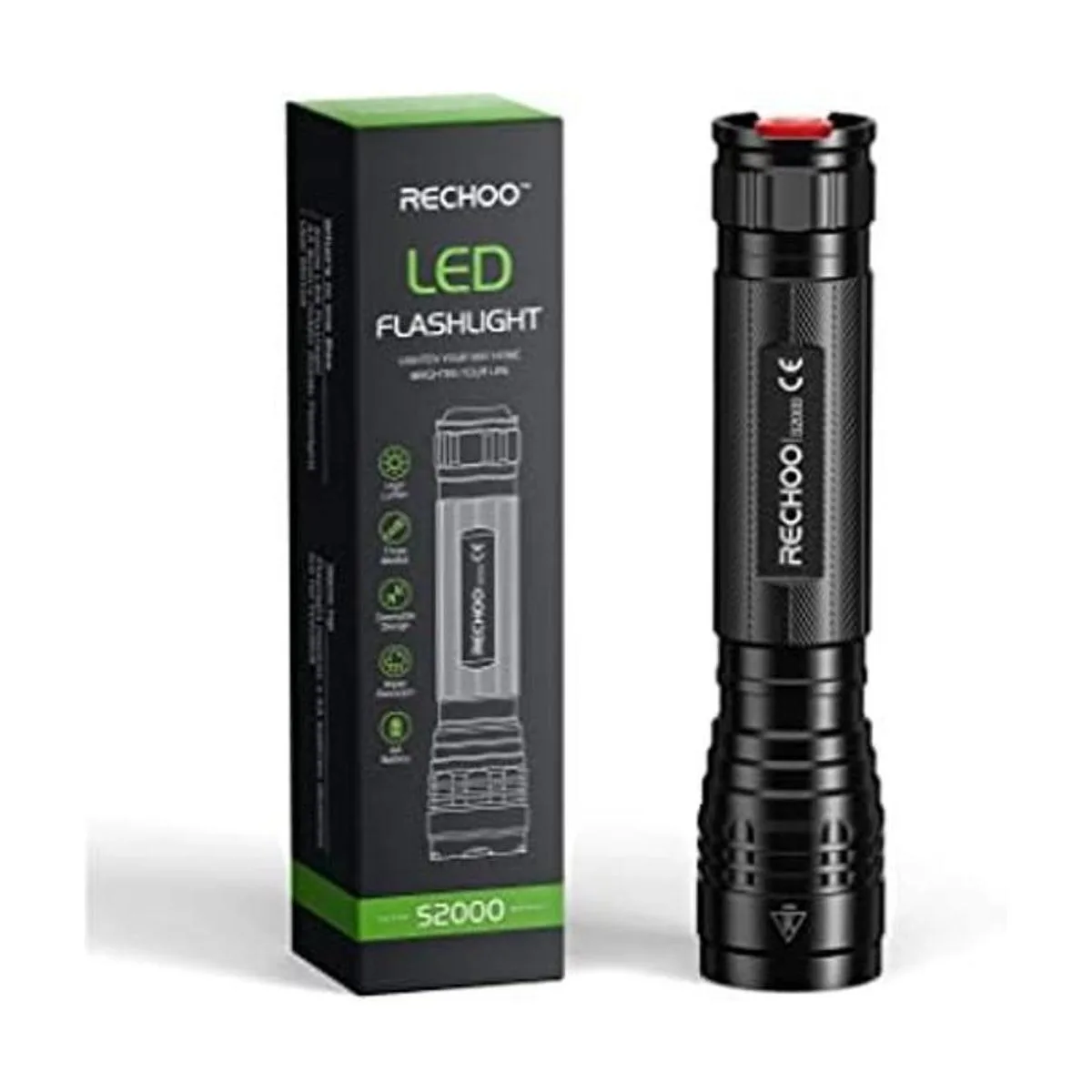 RECHOO Linterna LED de alta potencia S2000, potente linterna mejorada de 2000 lúmenes altos con 3 modos, zoom y resistente al agua para campamento, exteriores, emergencia, senderismo