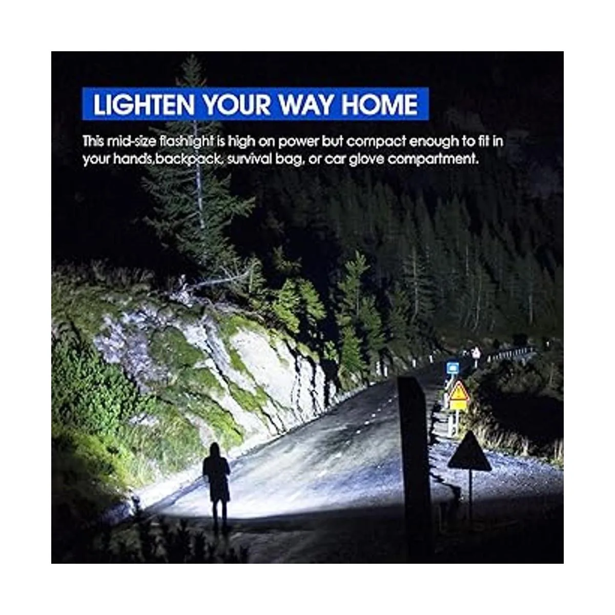 Batería de larga duración: utilizando 4 pilas AA no incluidas como fuente de alimentación, nuestra linterna de alto lúmenes tiene impresionantes tiempos de funcionamiento, proporcionando hasta 30 horas modo de luz baja de funcionamiento continuo, o 6 horas modo de luz alta. El tiempo de trabajo es 2 veces más largo que una linterna más táctica del mercado.