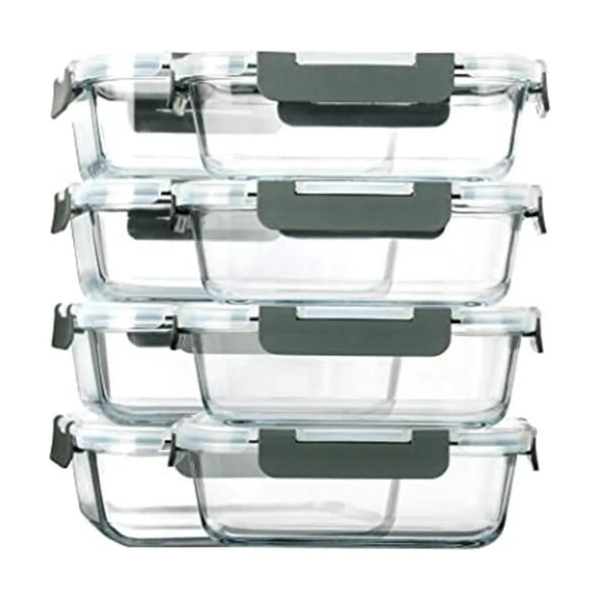 Recipiente de cristal para comida de MCIRCO, 8 unidades, 30 onzas, recipientes herméticos de vidrio para alimentos con tapas, sin BPA, para microondas, horno, congelador y lavavajillas