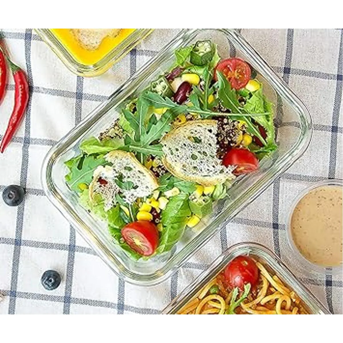 Vidrio de borosilicato de alta calidad: nuestros recipientes de almacenamiento de vidrio están hechos de vidrio de borosilicato de alta calidad; más resistente que otros materiales y de uso seguro en el refrigerador, el microondas o el horno.