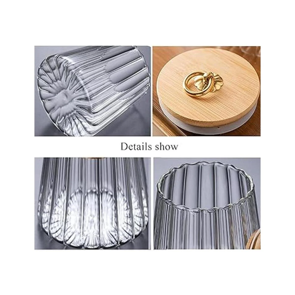 Recipiente de cristal para nueces de café hermético, recipiente decorativo de pétalos con tapa de bambú, mango de metal, fácil de agarrar, 23.7 fl oz, 23 onzas líquidas