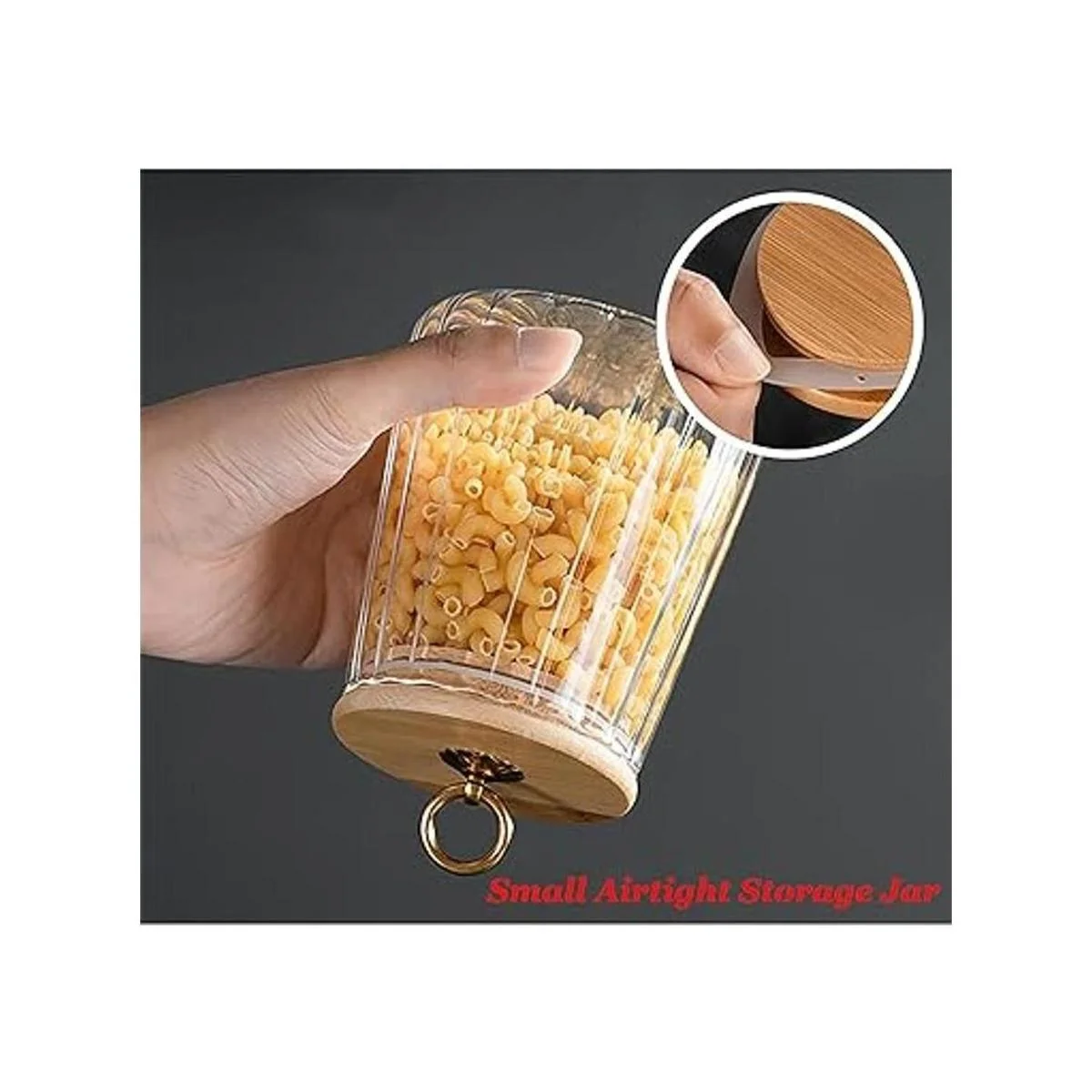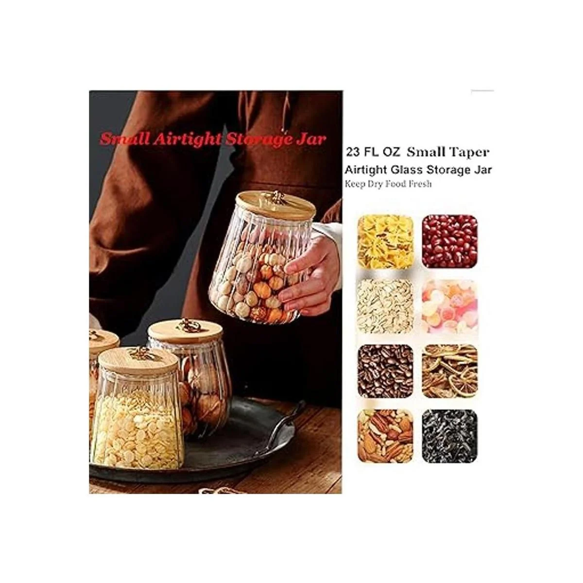 FANTESTICRYAN El recipiente de almacenamiento de vidrio está hecho de vidrio de borosilicato de alta calidad, que es sin plomo, sin BPA, apto para lavavajillas, almacenamiento de grado alimenticio. Viene con una tapa de bambú hermética y un mango de metal, que es resistente, duradero y fácil para el uso diario. Asegúrate de que es un tarro de almacenamiento de tamaño pequeño.