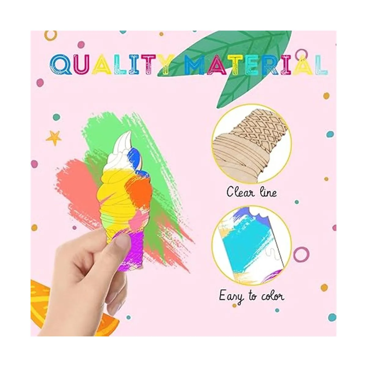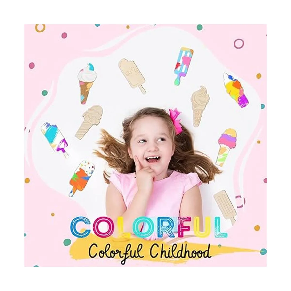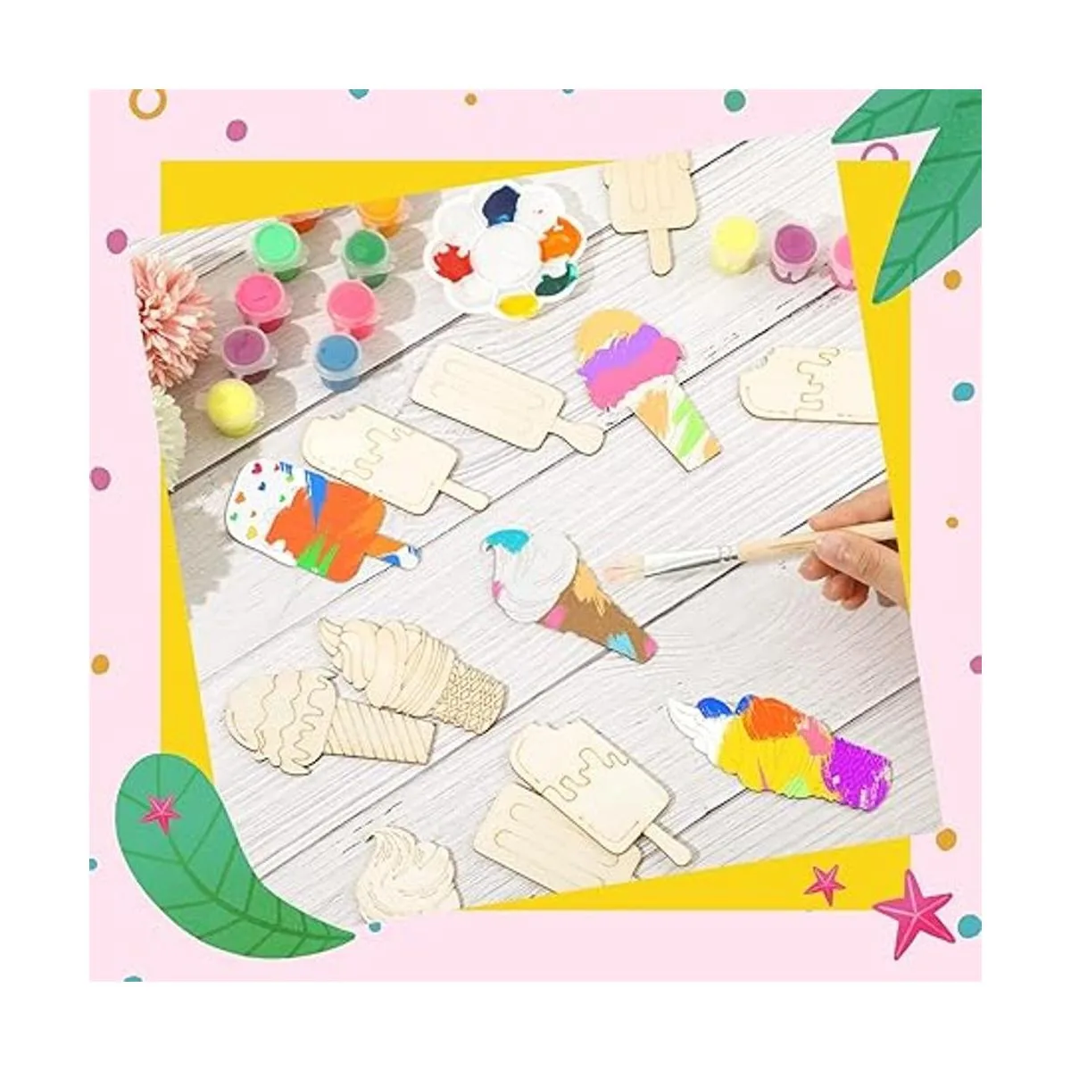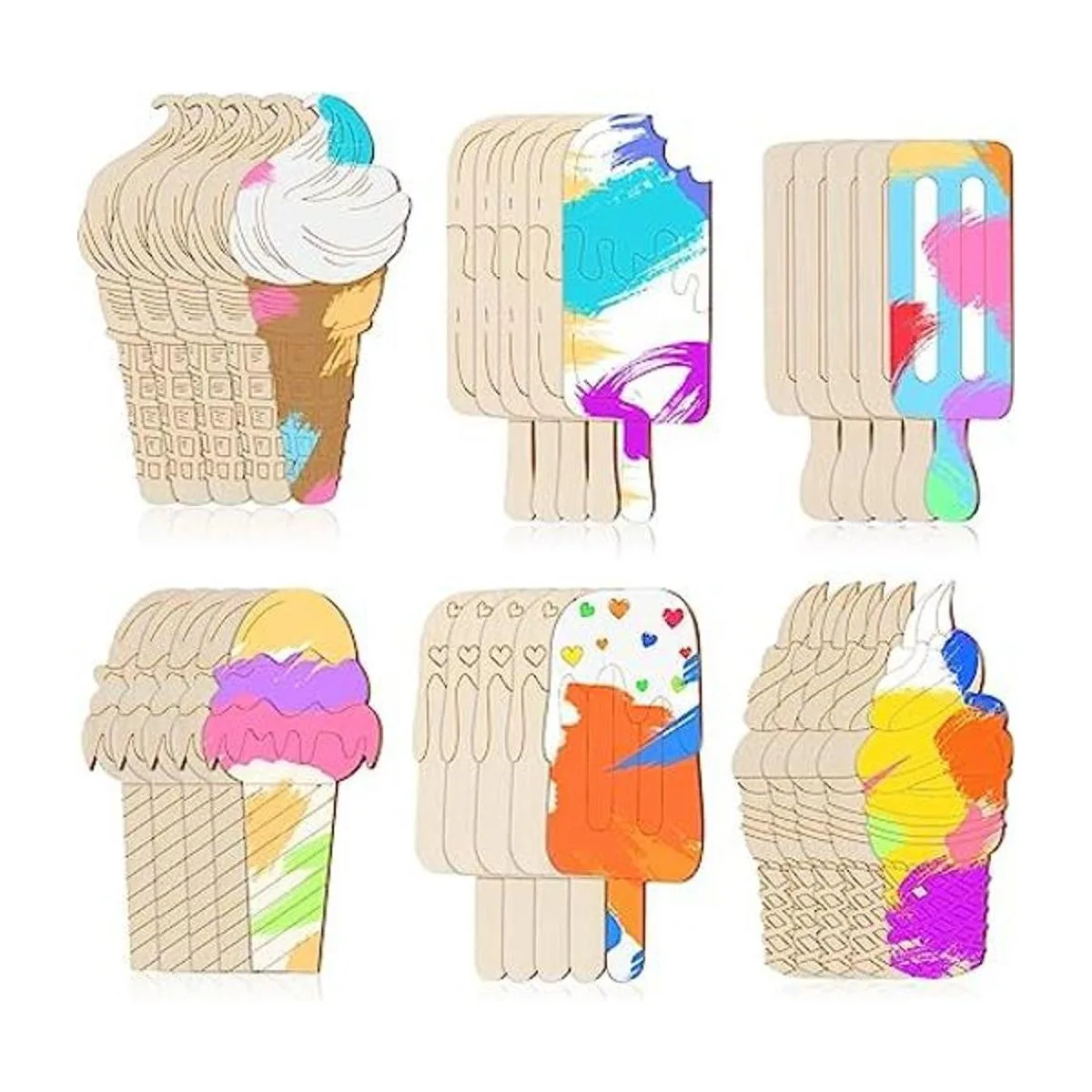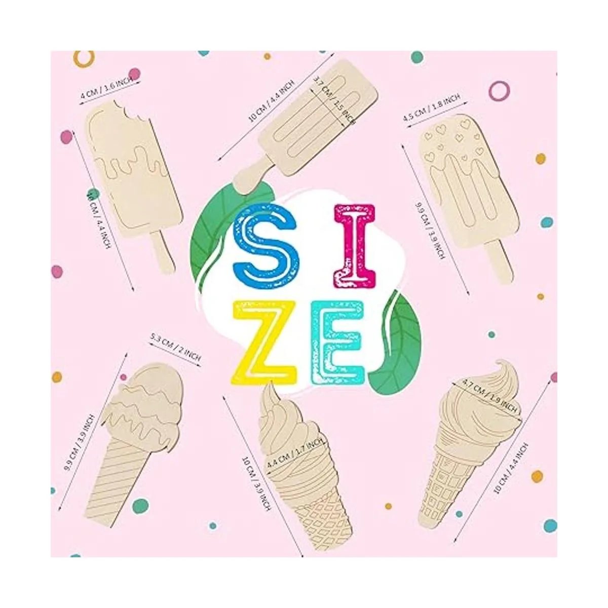 Recortes de madera de helado sin terminar, recortes de madera para manualidades, decoración de madera de helado, adorno de madera para niños, adornos de pintura de cumpleaños, 6 estilos 30 piezas