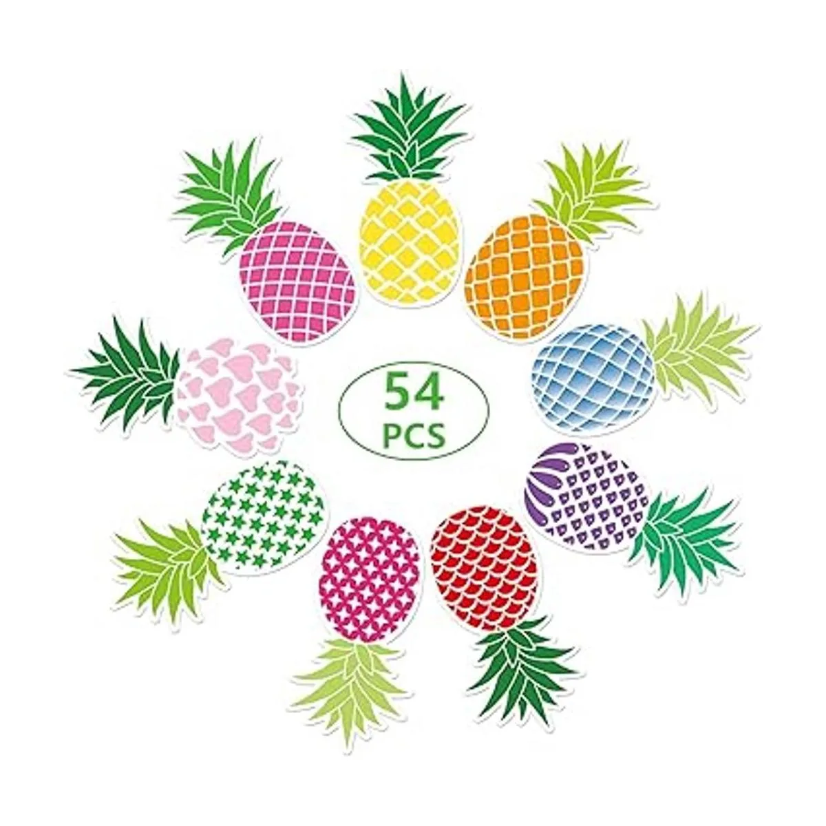Lo que obtienes: 54 recortes de piña. 9 diseños diferentes. Cartón de 6 pulgadas.