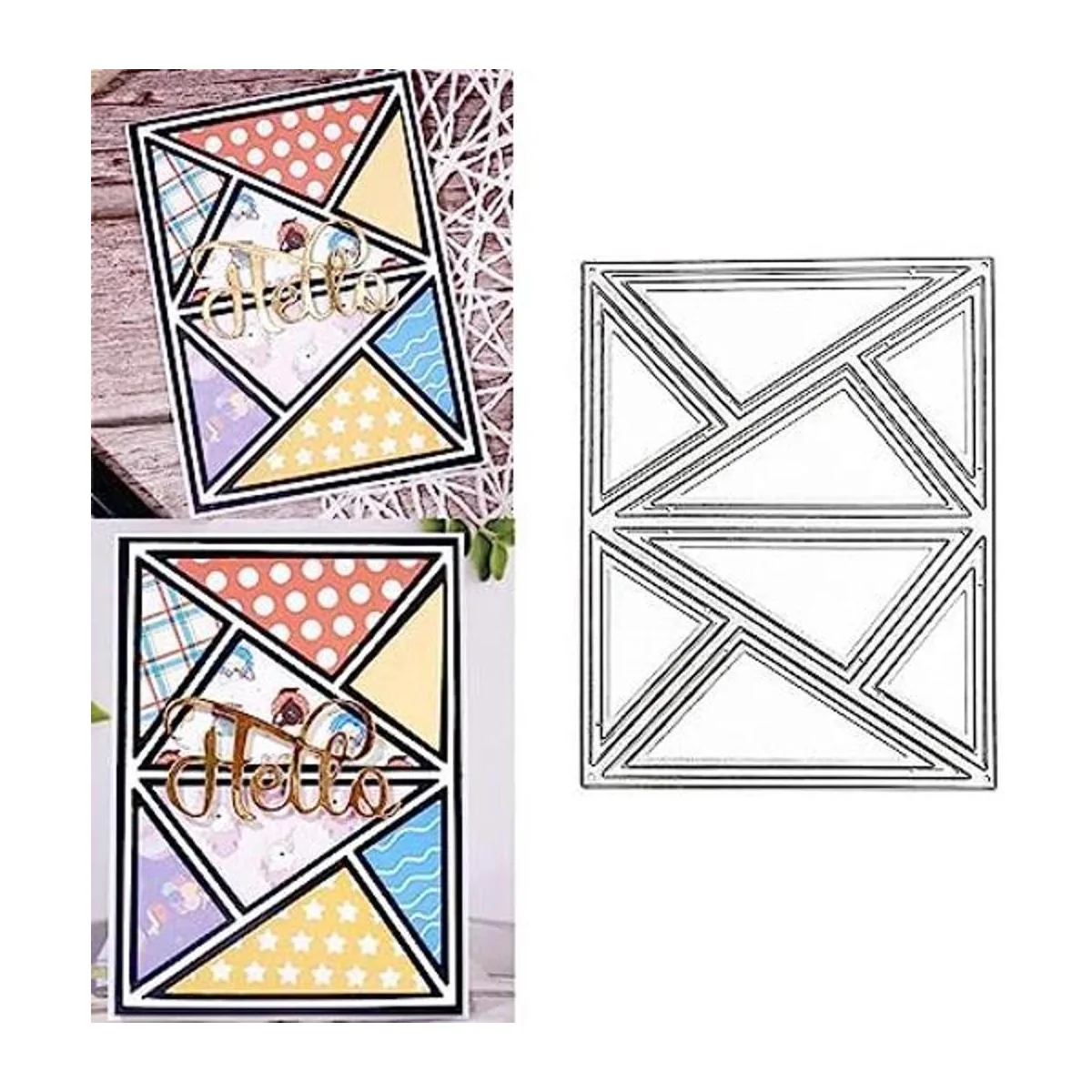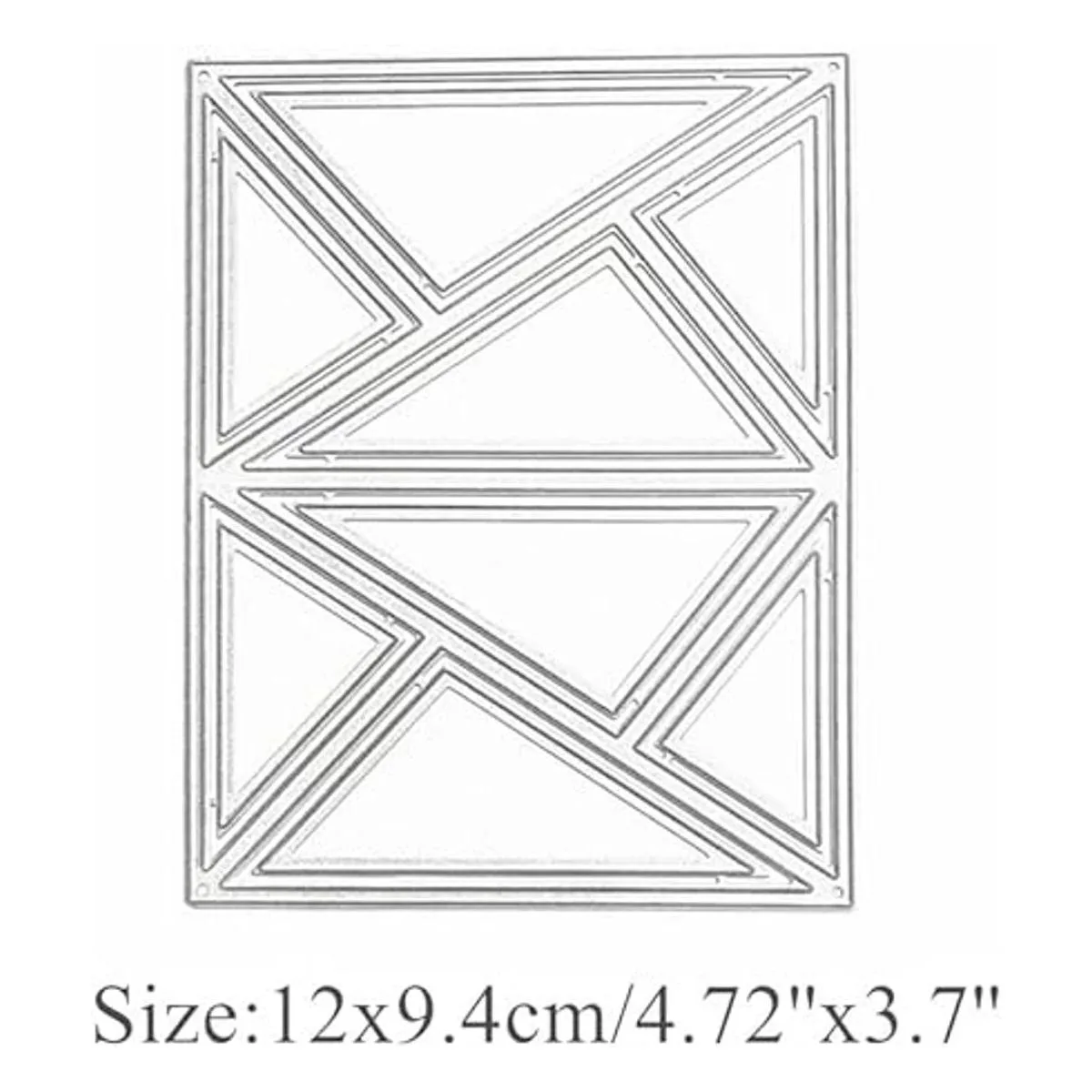 ColorSize:Color: Silver.Size:12×9.4cm/4.72×3.7. PACKAGE INCLUDE: The cutting dies set contains 1pc/set Rectangle Triangle Frame pattern metal stencils.